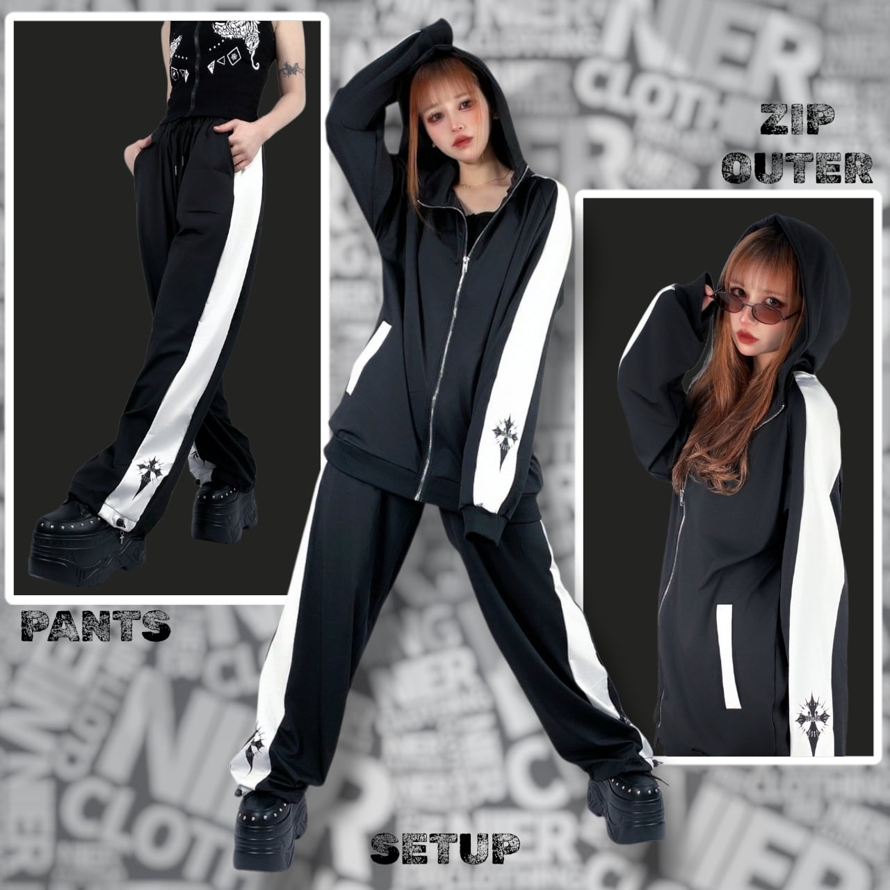 ・WHITE LINE ZIP OUTER【CROSS】