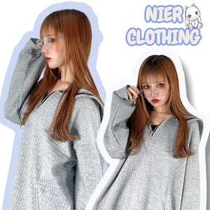 ・UNISEXセーラー襟ハーフZIPワッフルトップス【GRAY】
