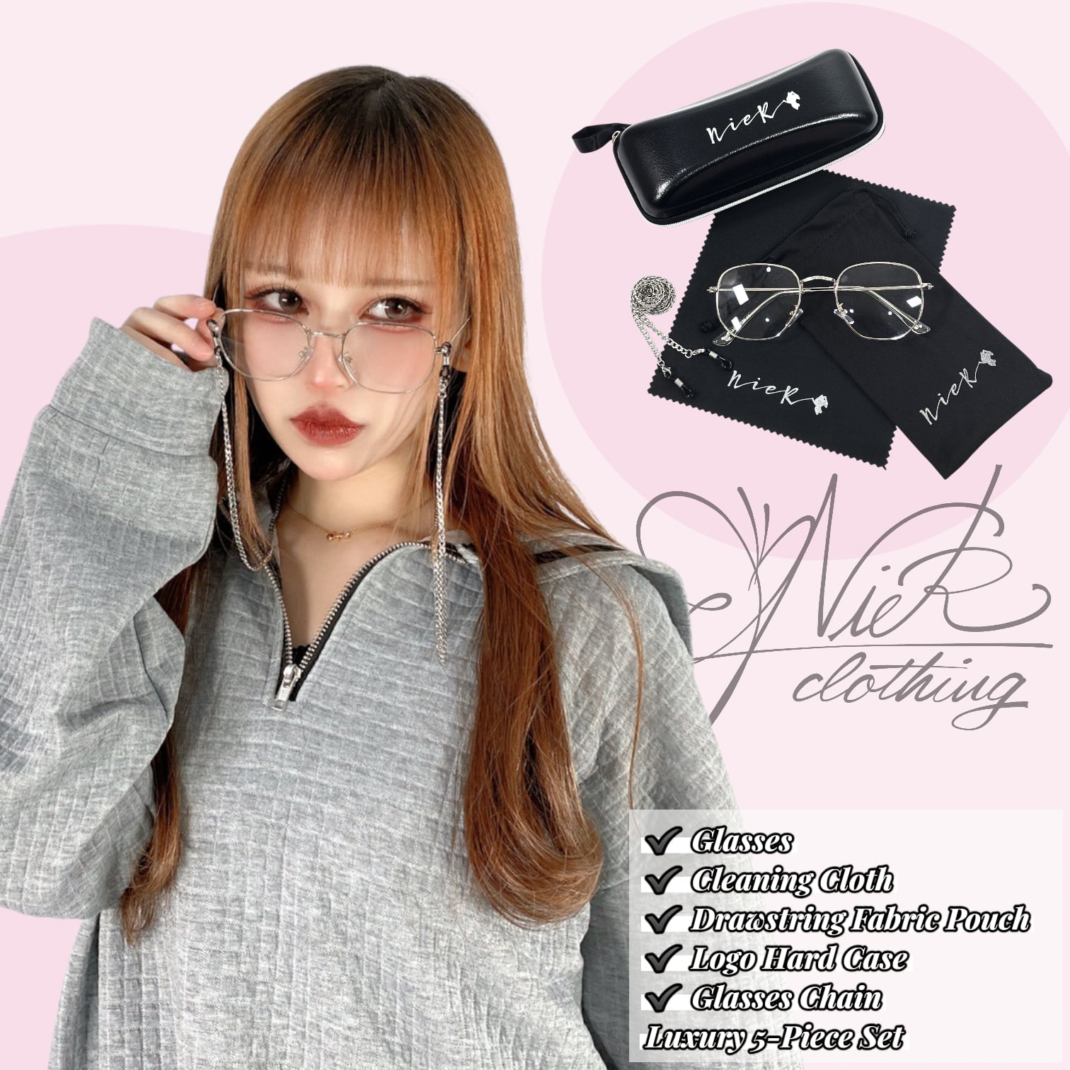 《先着28点限定66%OFF》 NIERロゴ入りメタルフレームメガネ《5点コンプリートセット》