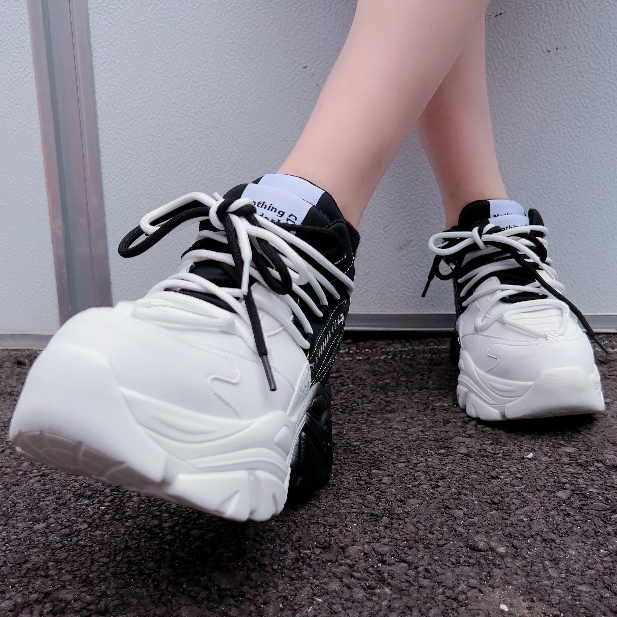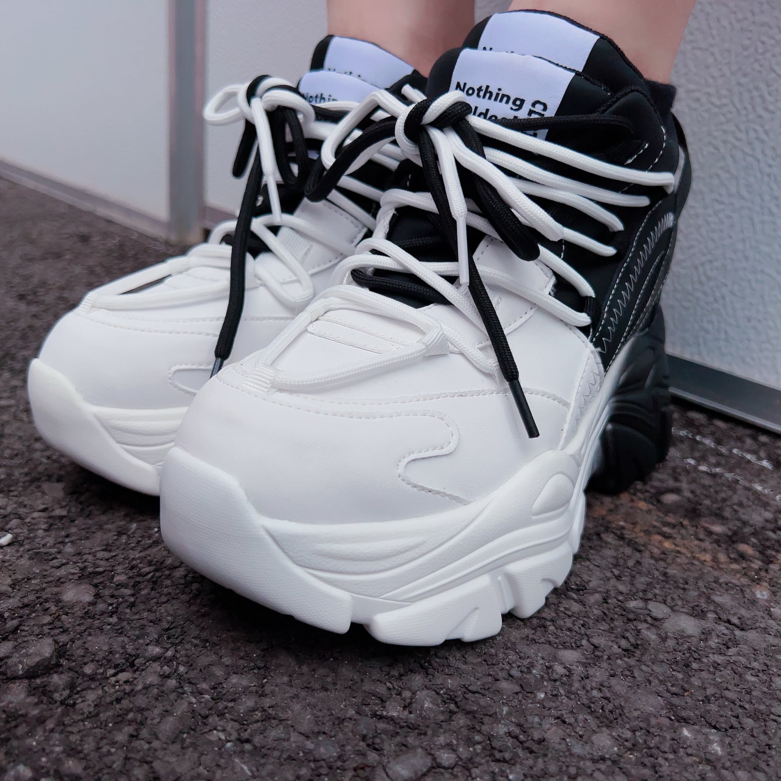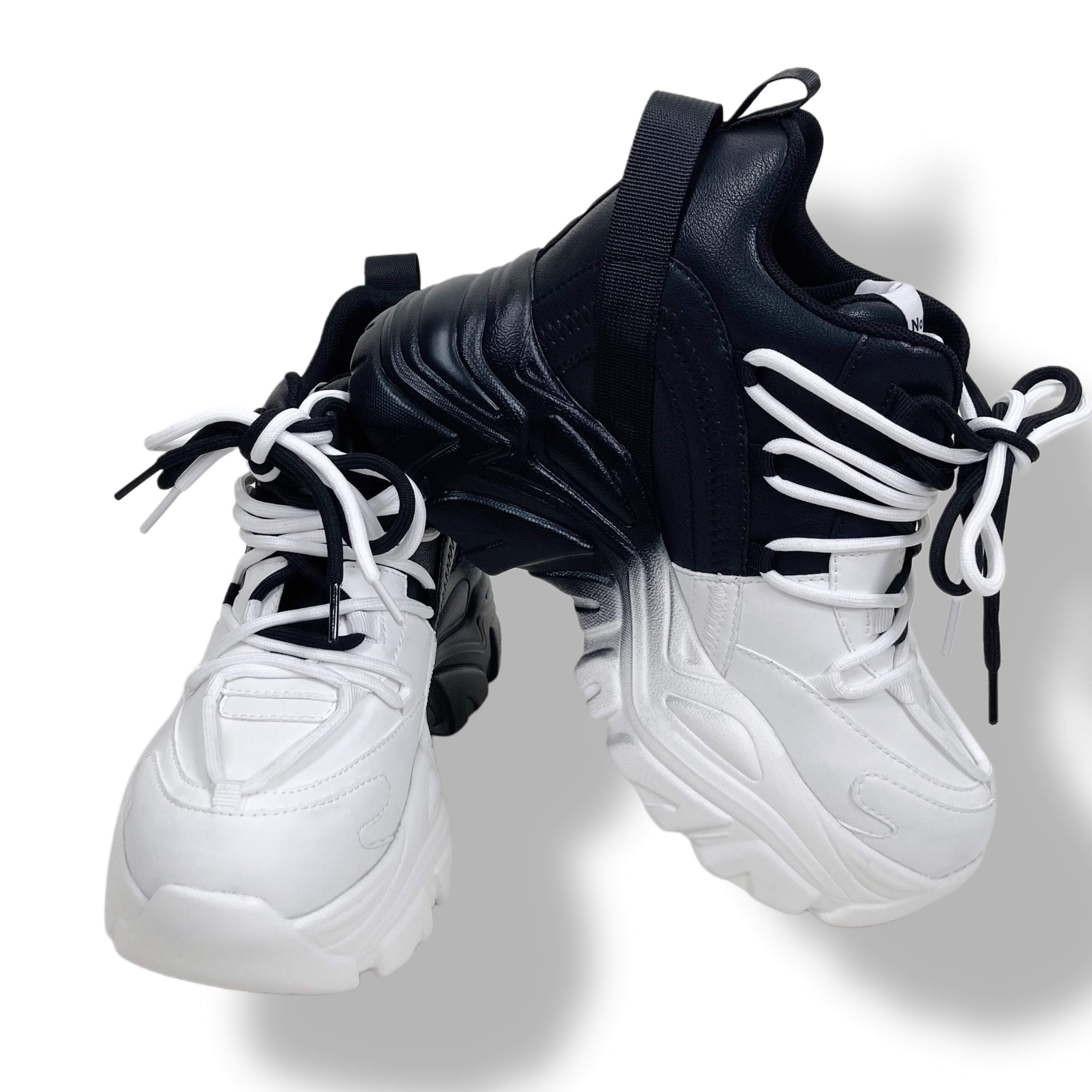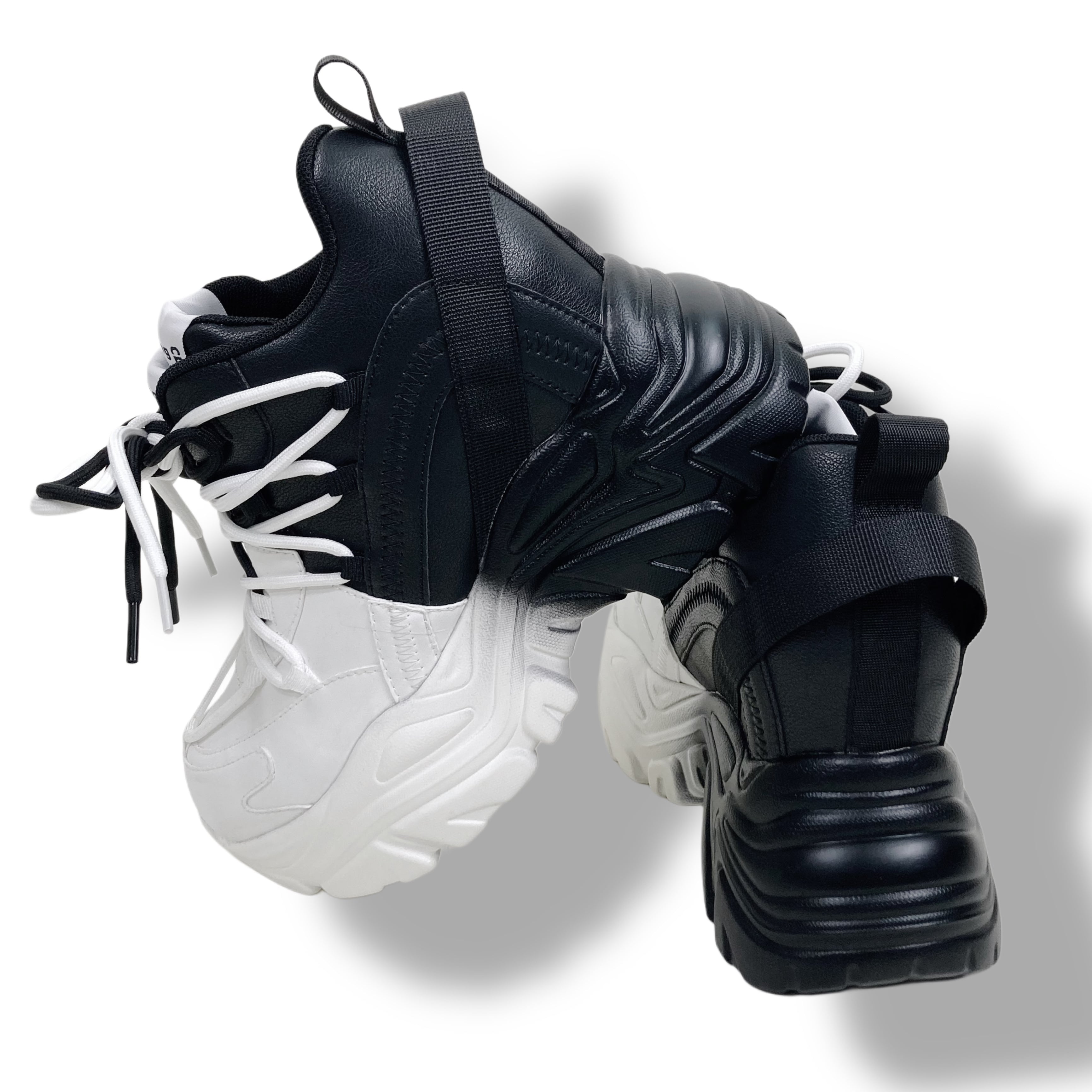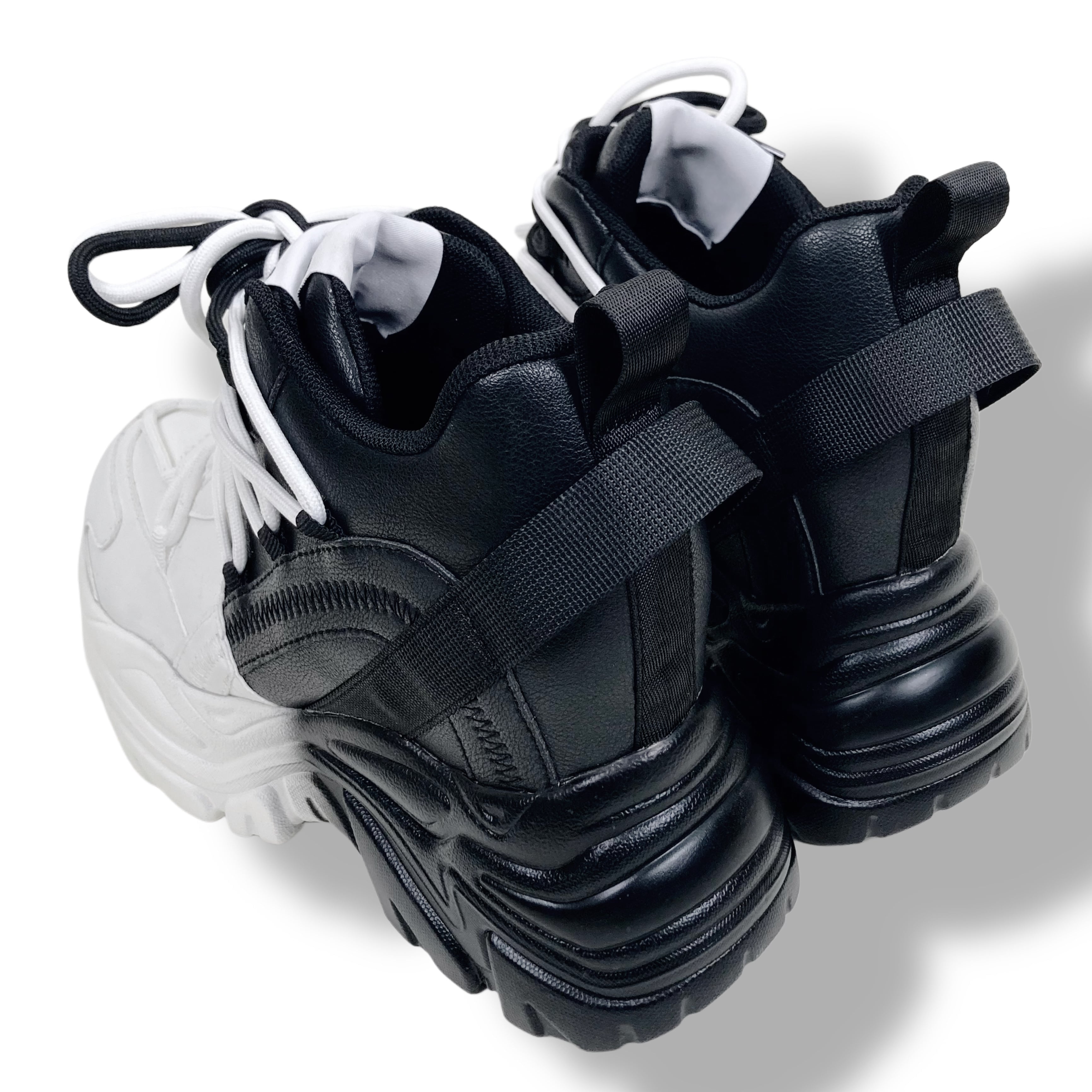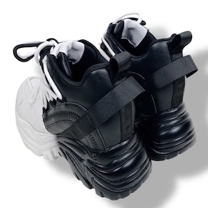 【EU37限定】《身長約8.5cmUP》自在アレンジDOUBLE TONGUE SHOES【WHITE×BLACK】