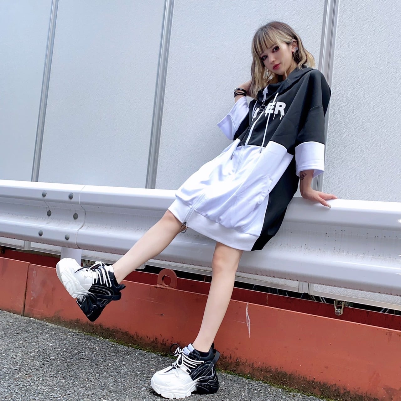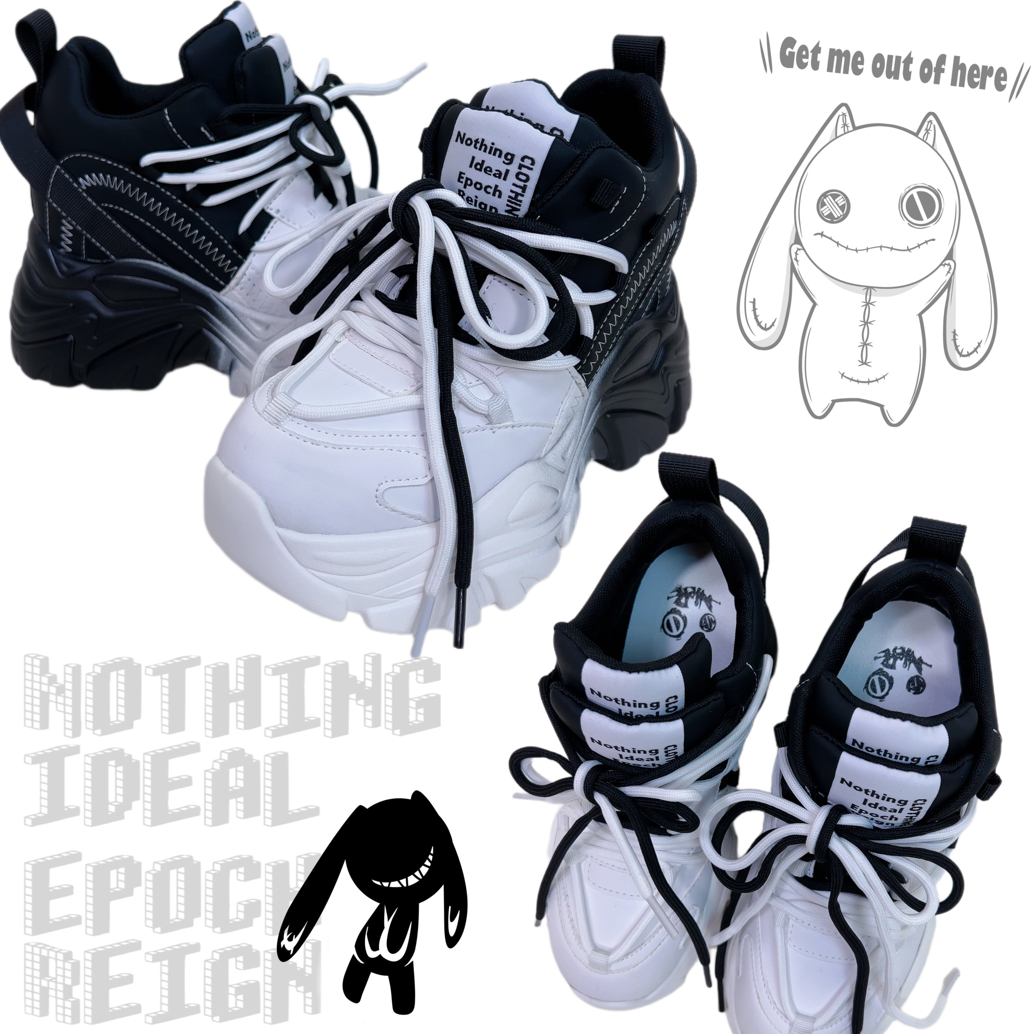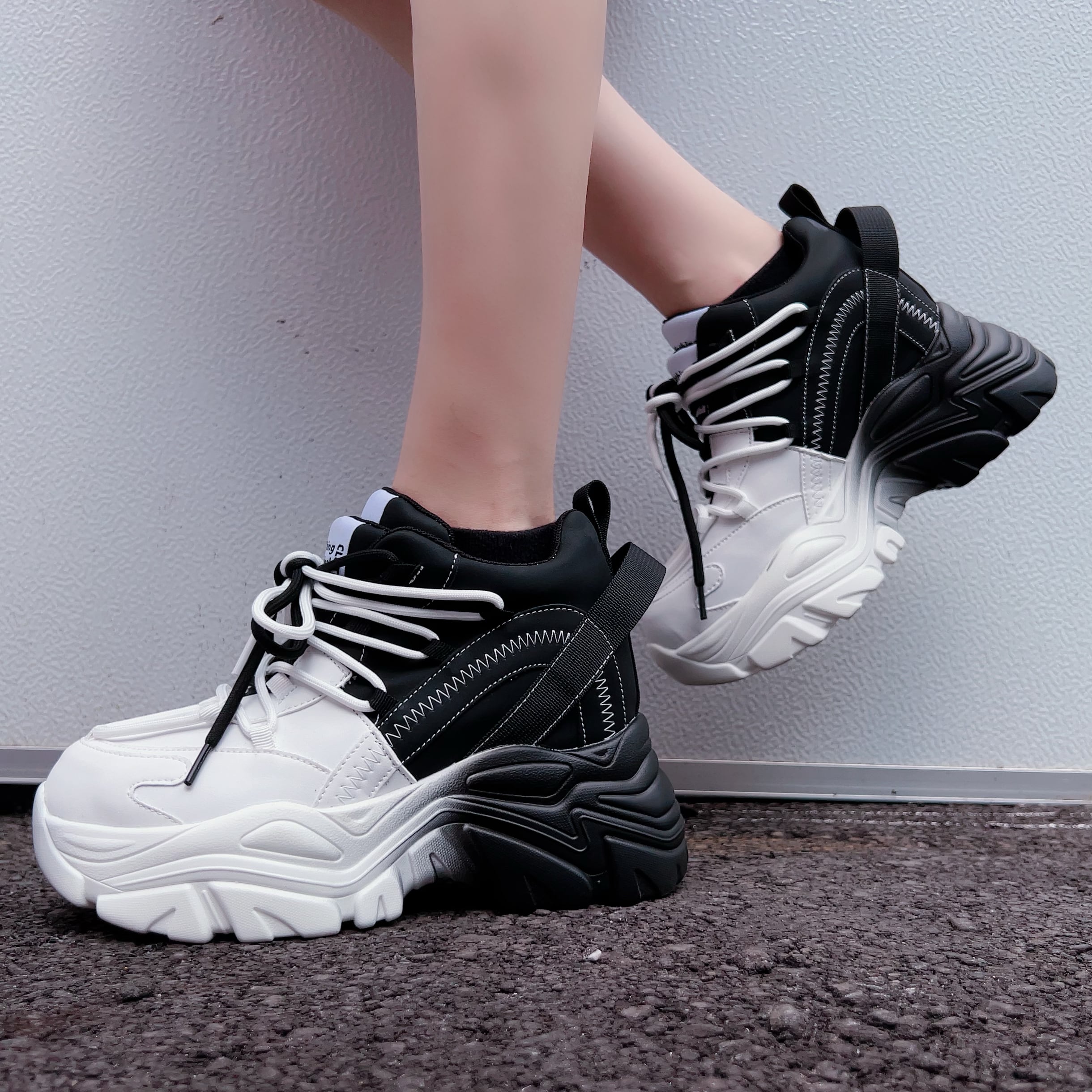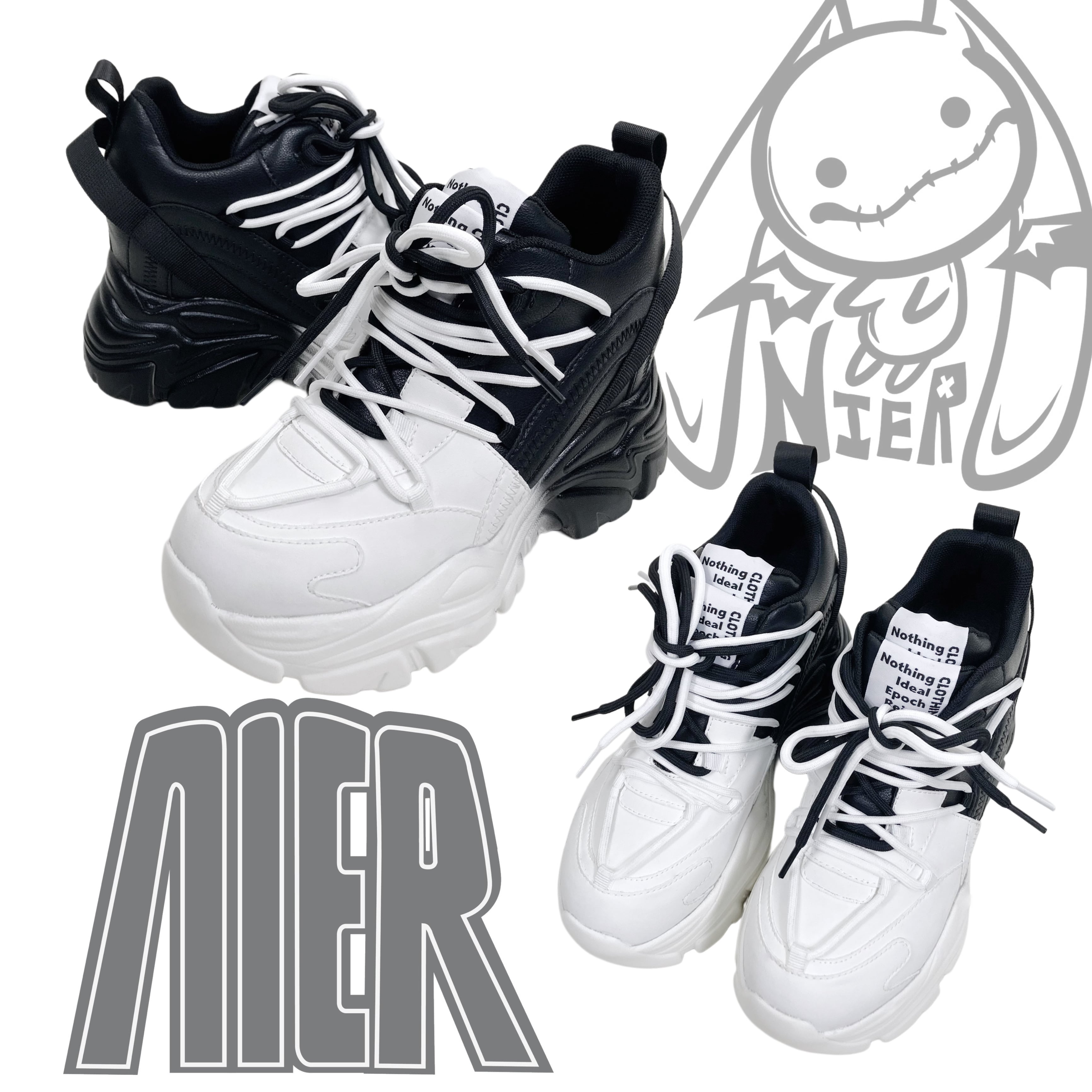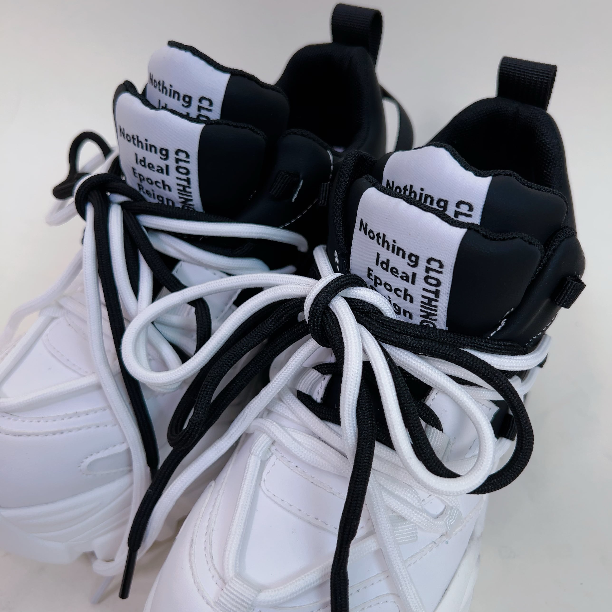 【EU37限定】《身長約8.5cmUP》自在アレンジDOUBLE TONGUE SHOES【WHITE×BLACK】