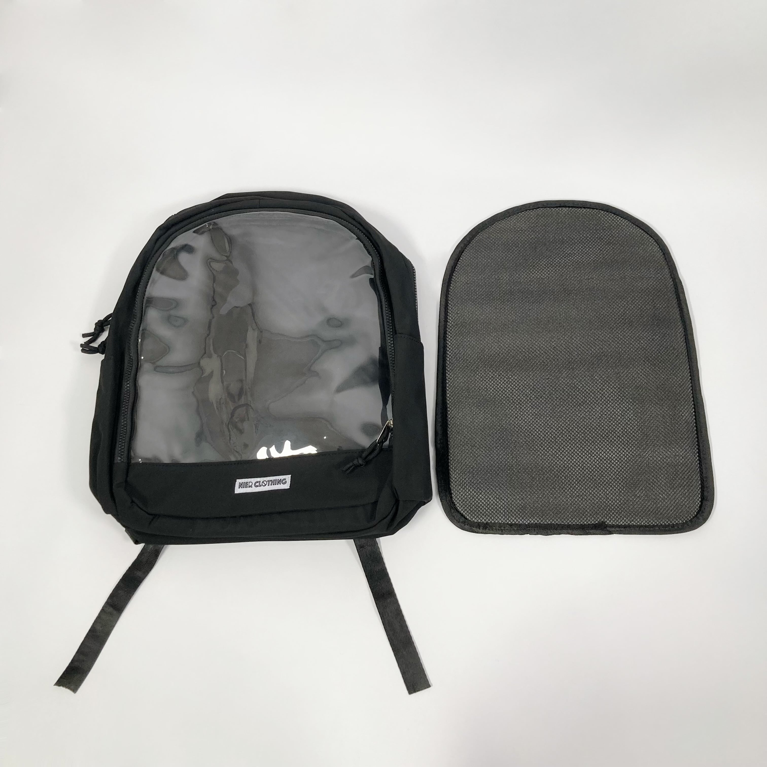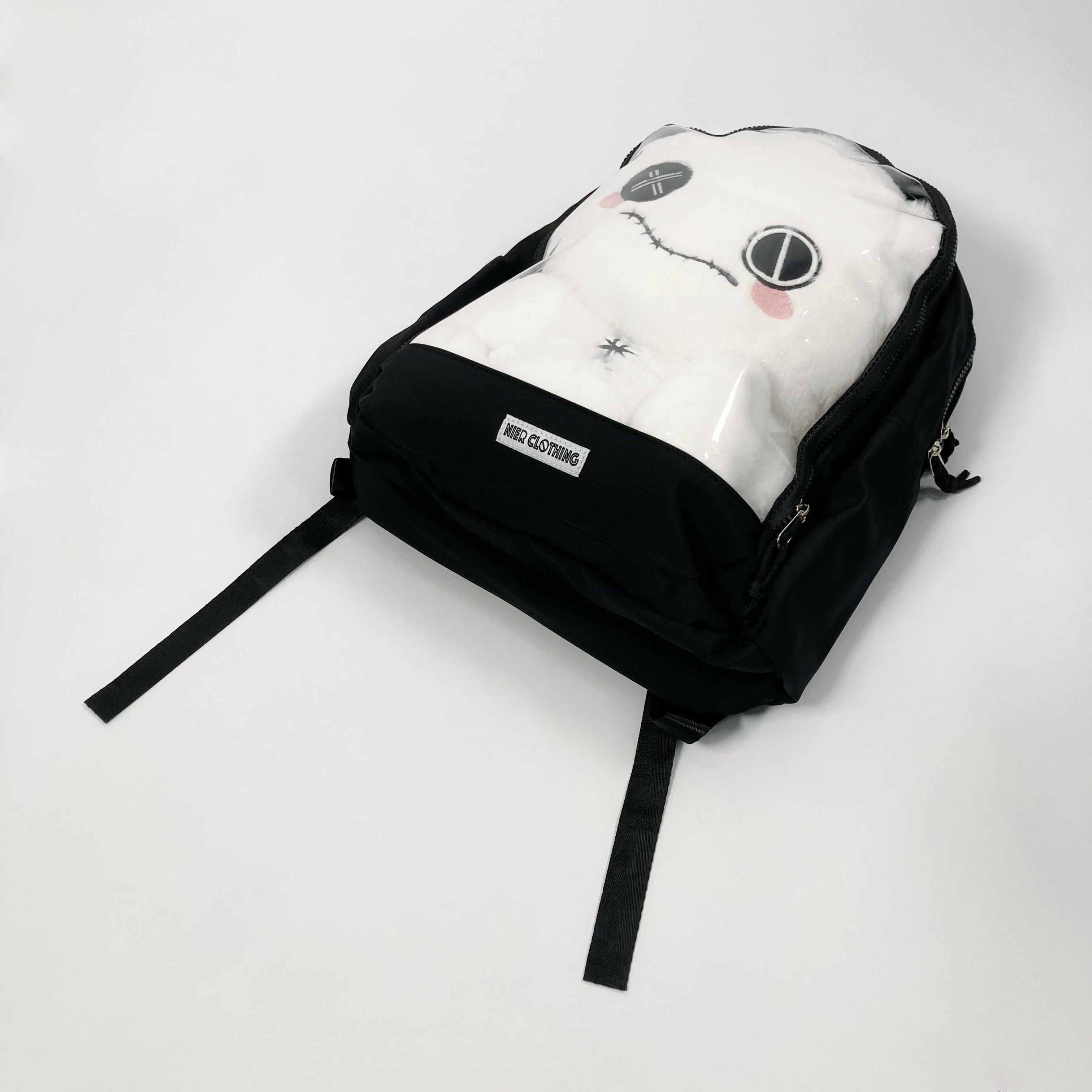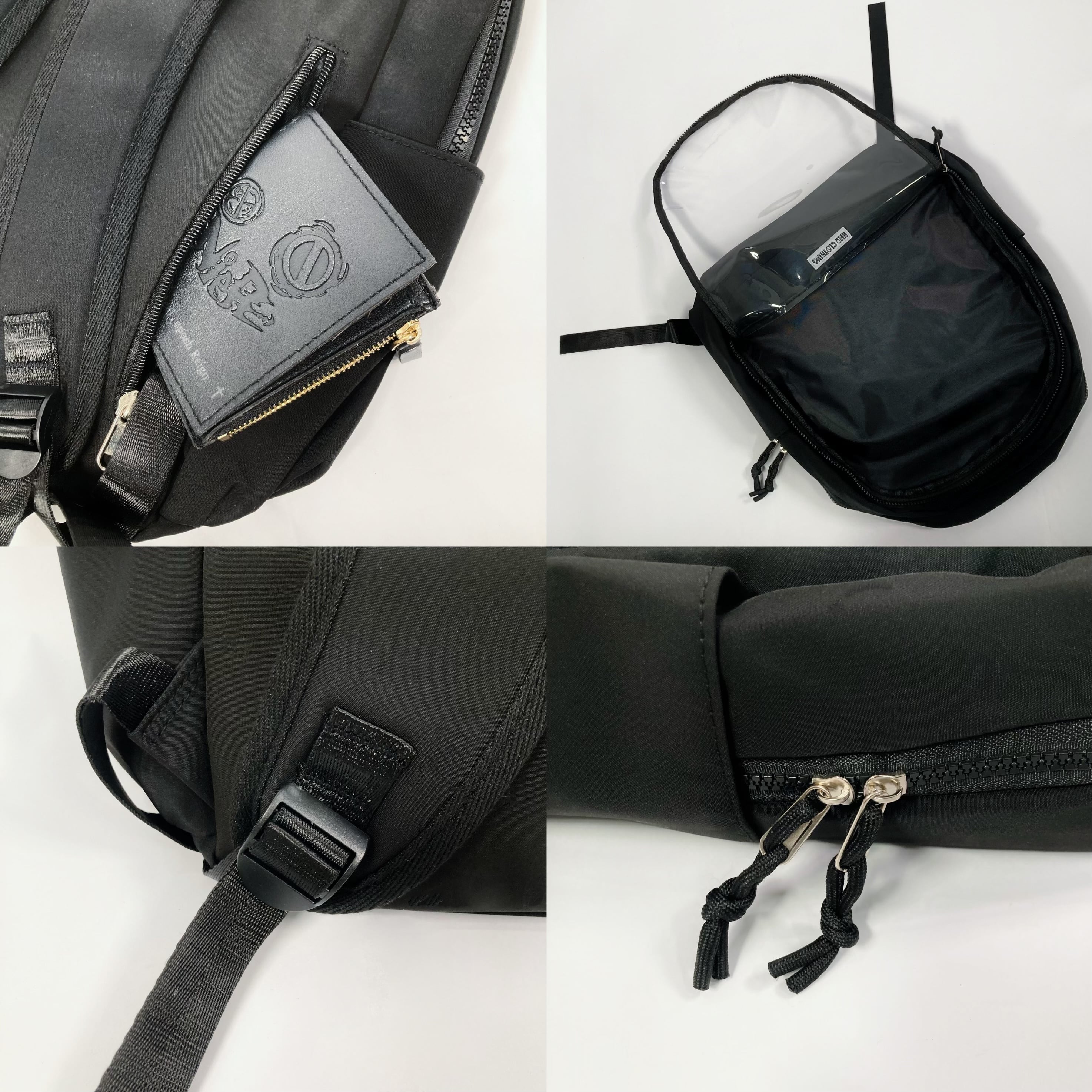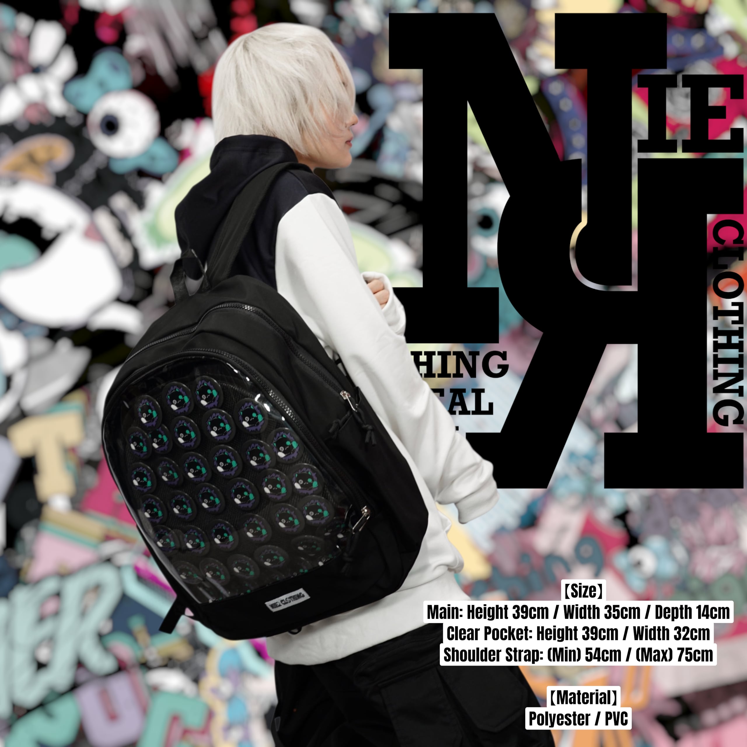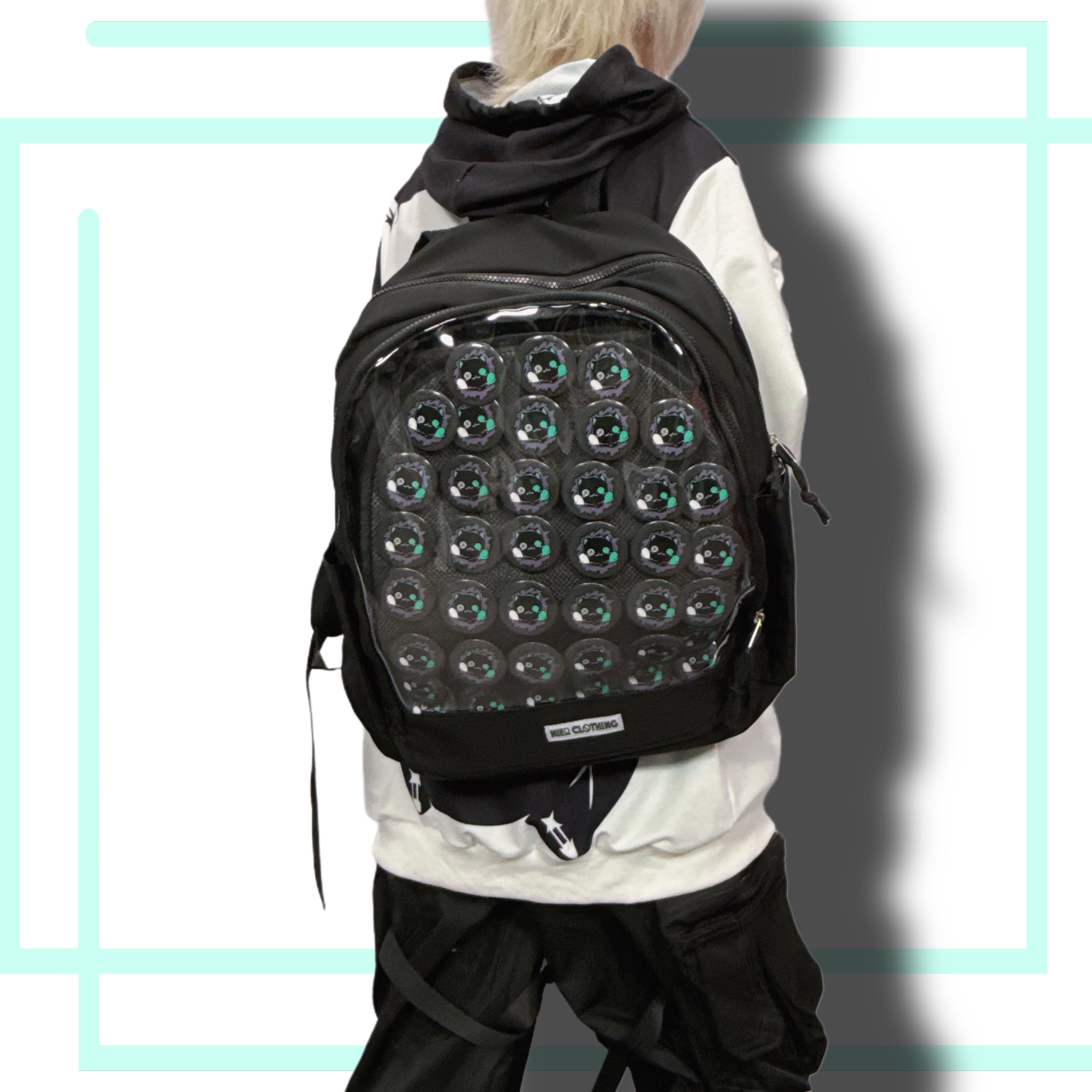 手前のジッパーを開けると、中は1面メッシュ素材になっているので、鞄に穴を開ける事なく缶バッジをお付け頂けます。
