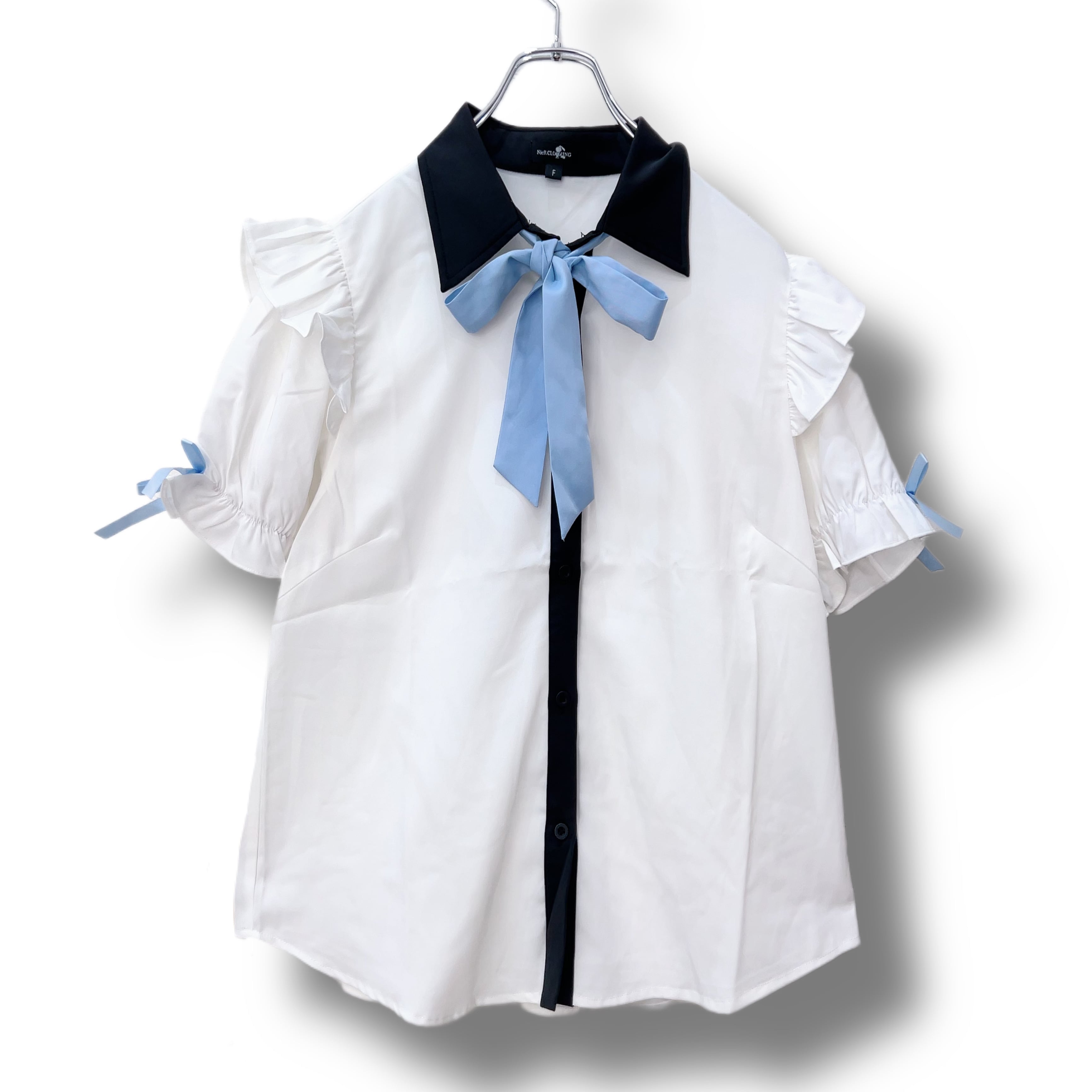【訳ありPRICE DOWN】リボンタイ付きフリルブラウス