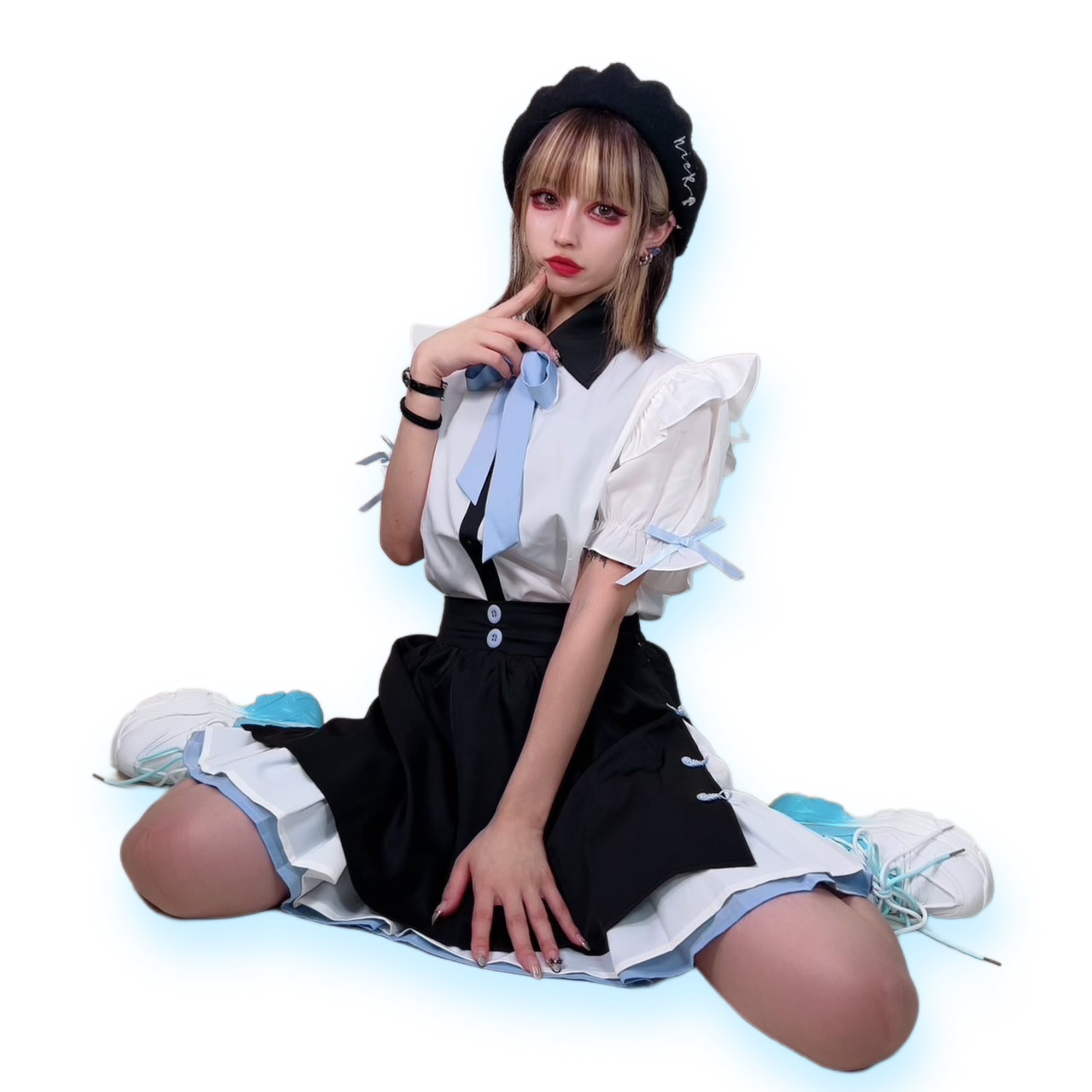淡いブルー×ホワイト×ブラックのトリコロールカラーも可愛いポイント♪