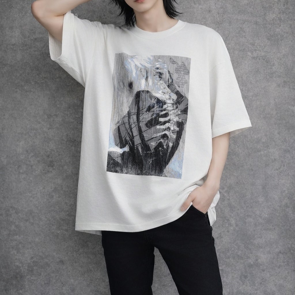 細身のパンツと合わせてグラフィックを際立たせた着こなしはもちろん、