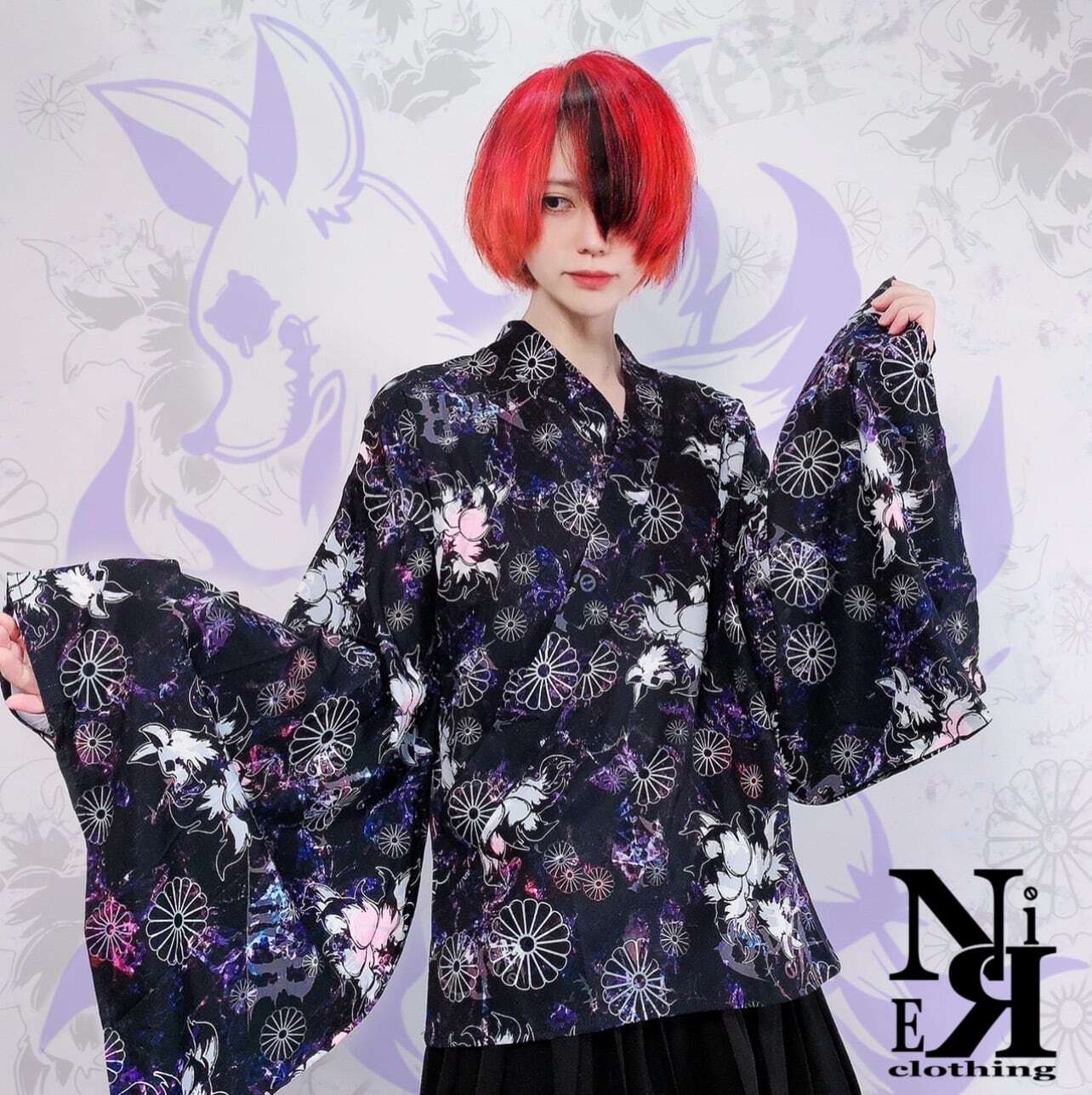 ・袴着物風袖プルオーバー【和柄九尾・紫】