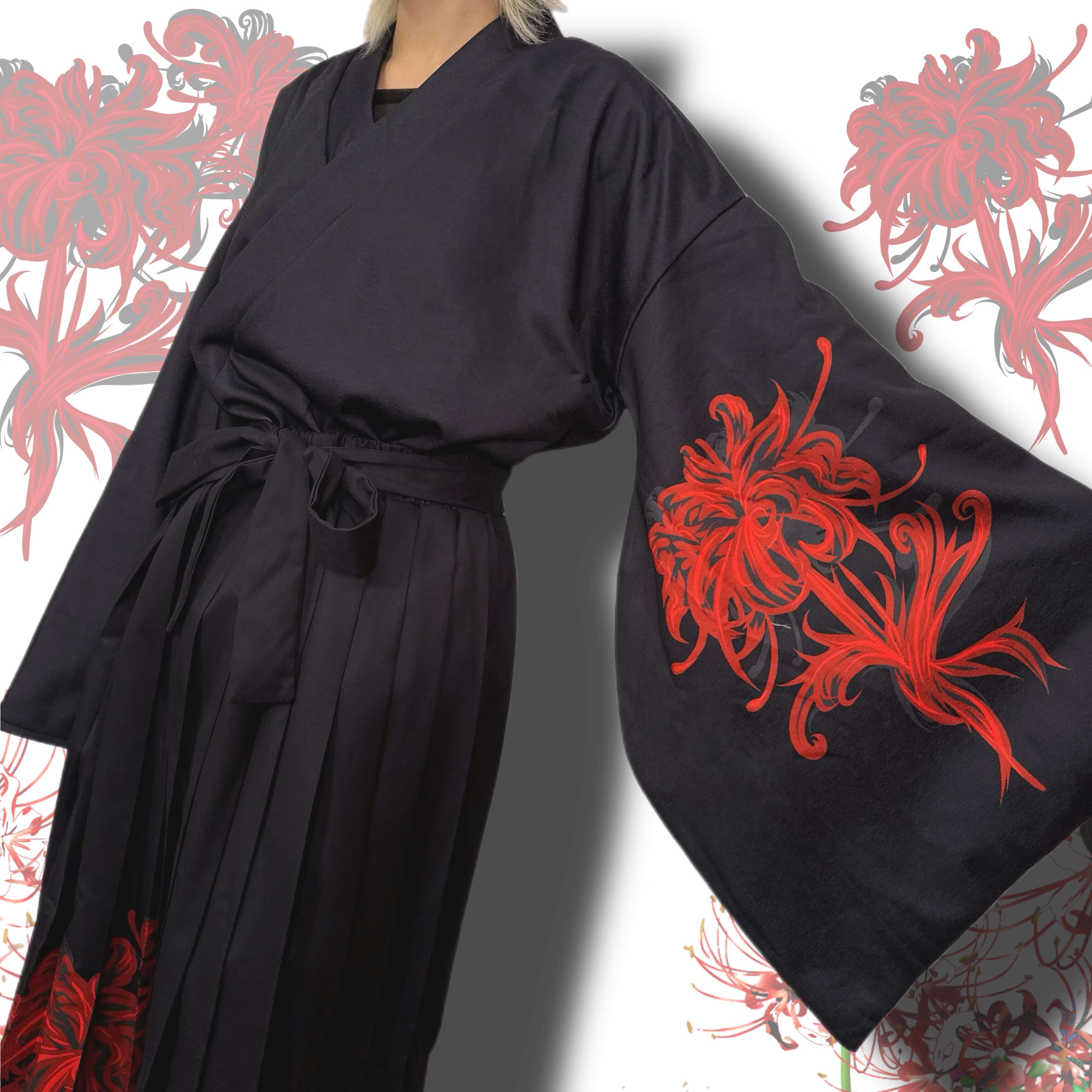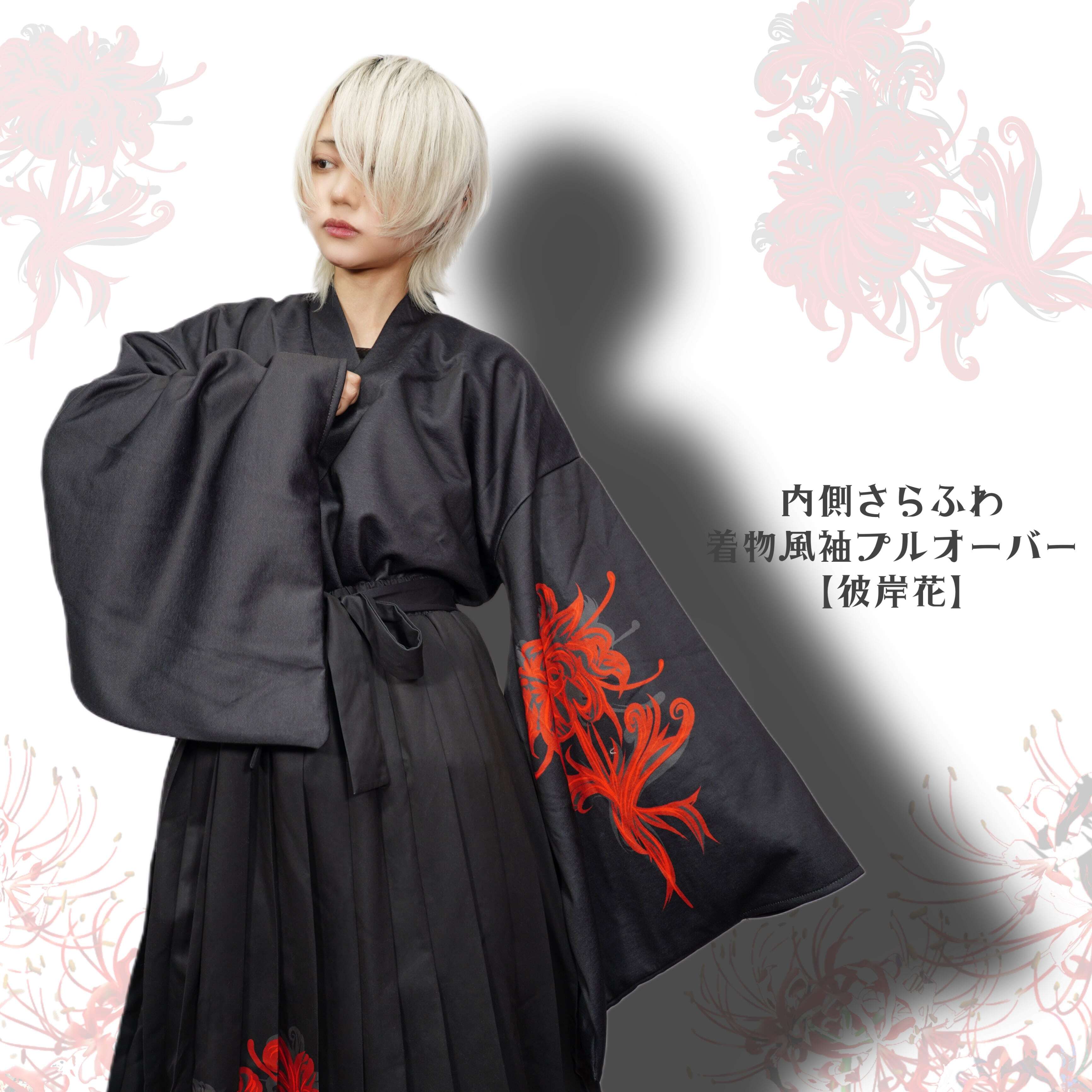 ・内側さらふわ着物風袖プルオーバー【彼岸花】