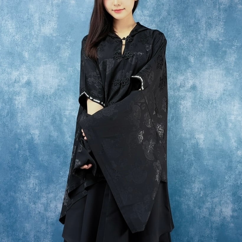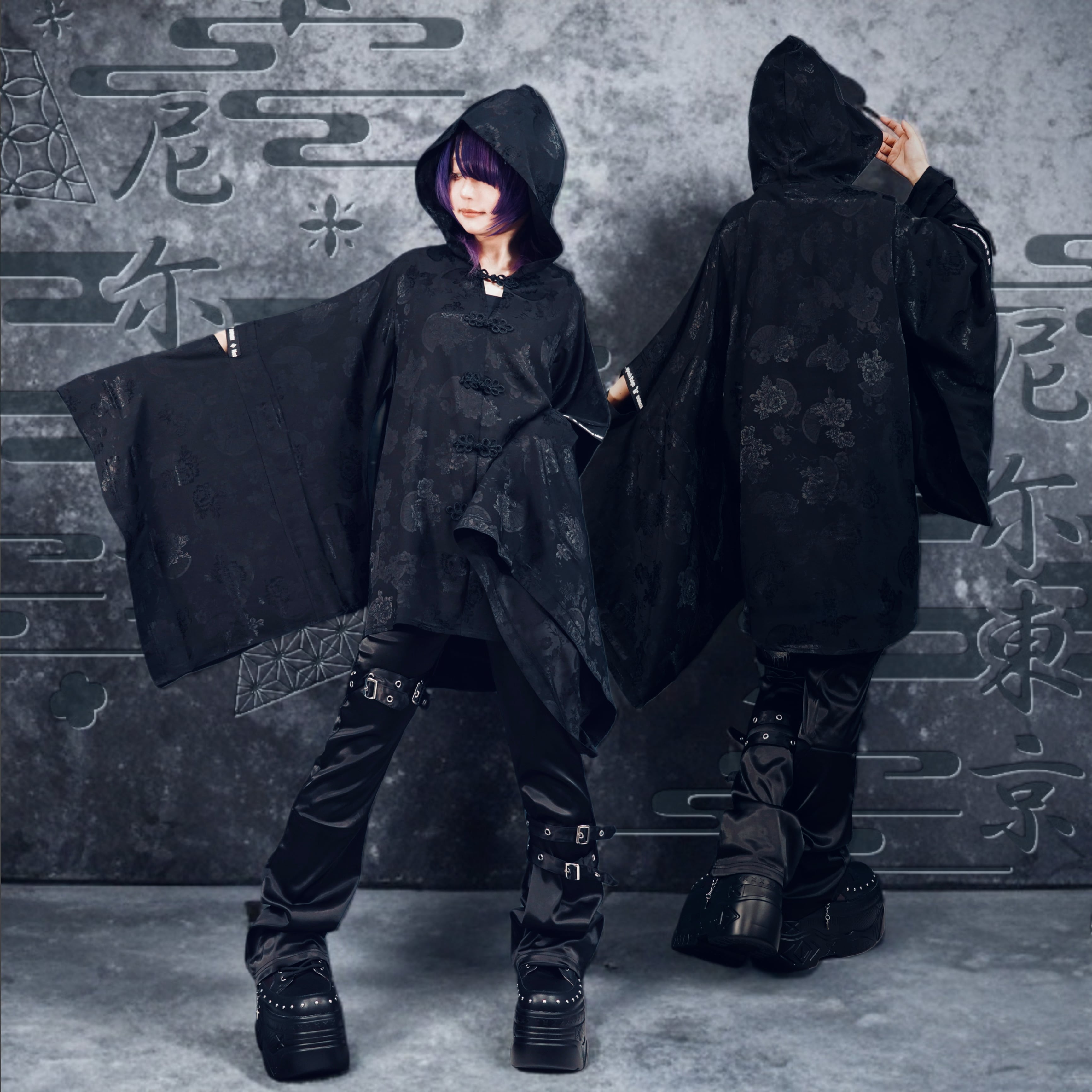 《4月下旬限定超大特価》“和華妖艶” CHINA BUTTON HOOD TOP【BLACK】