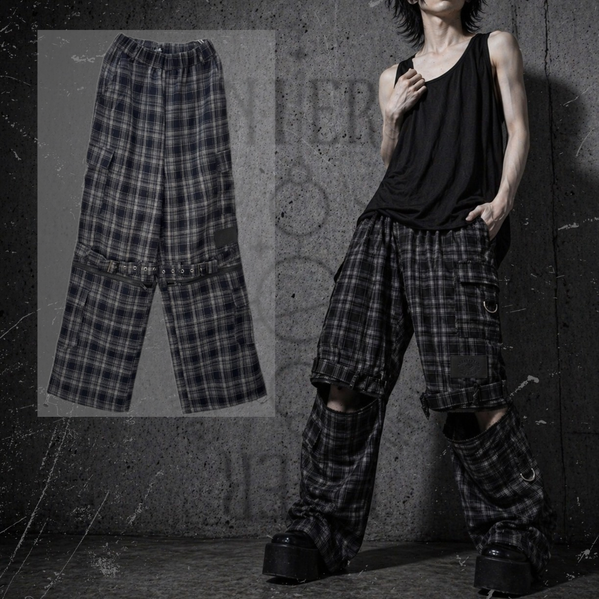 《月末限定超大特価》6POCKET TARTAN CHECK GIMMICK CARGO PANTS