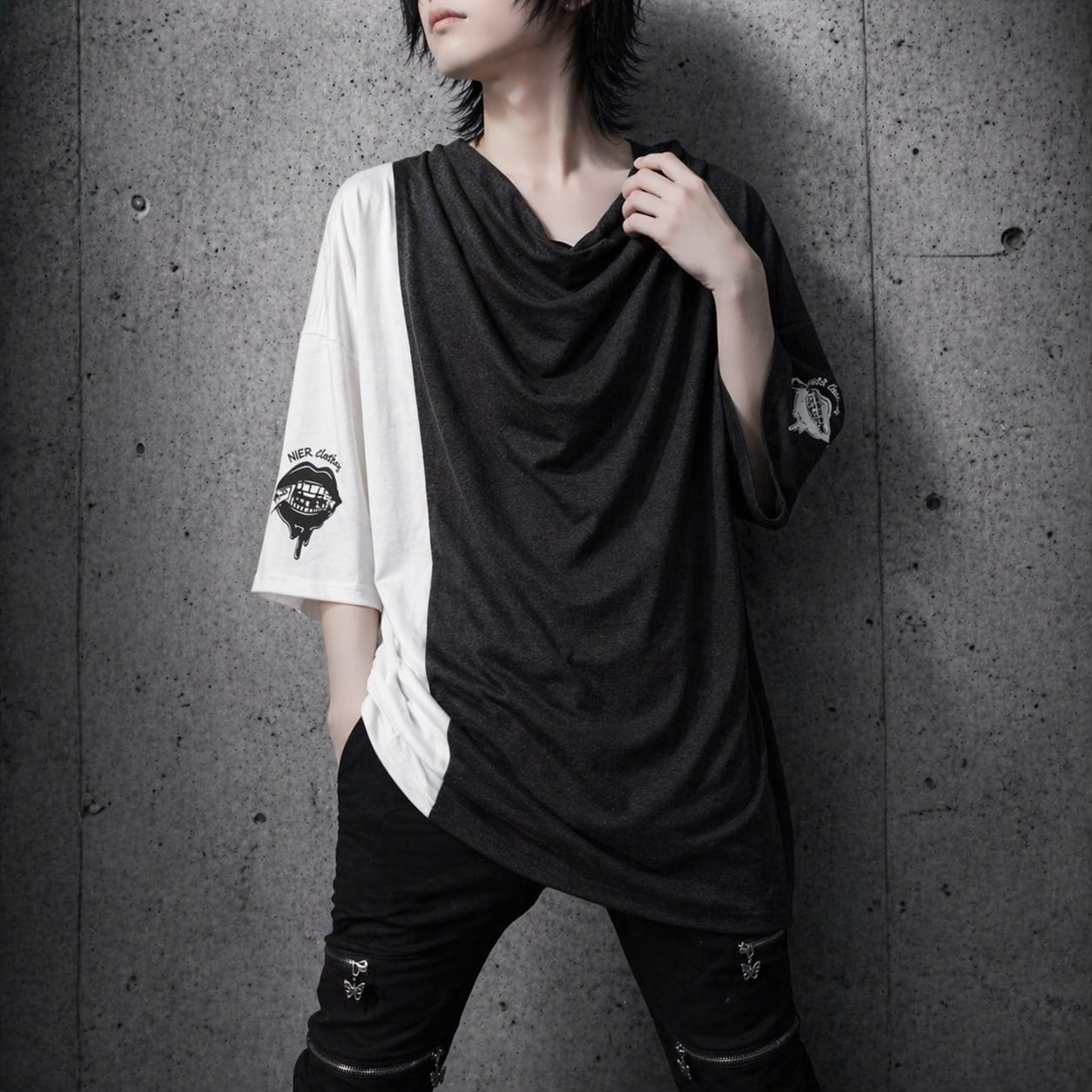 【先着39点限定超大特価】ドレープネックTWO-TONE CUTSEW【GRAY×WHITE】