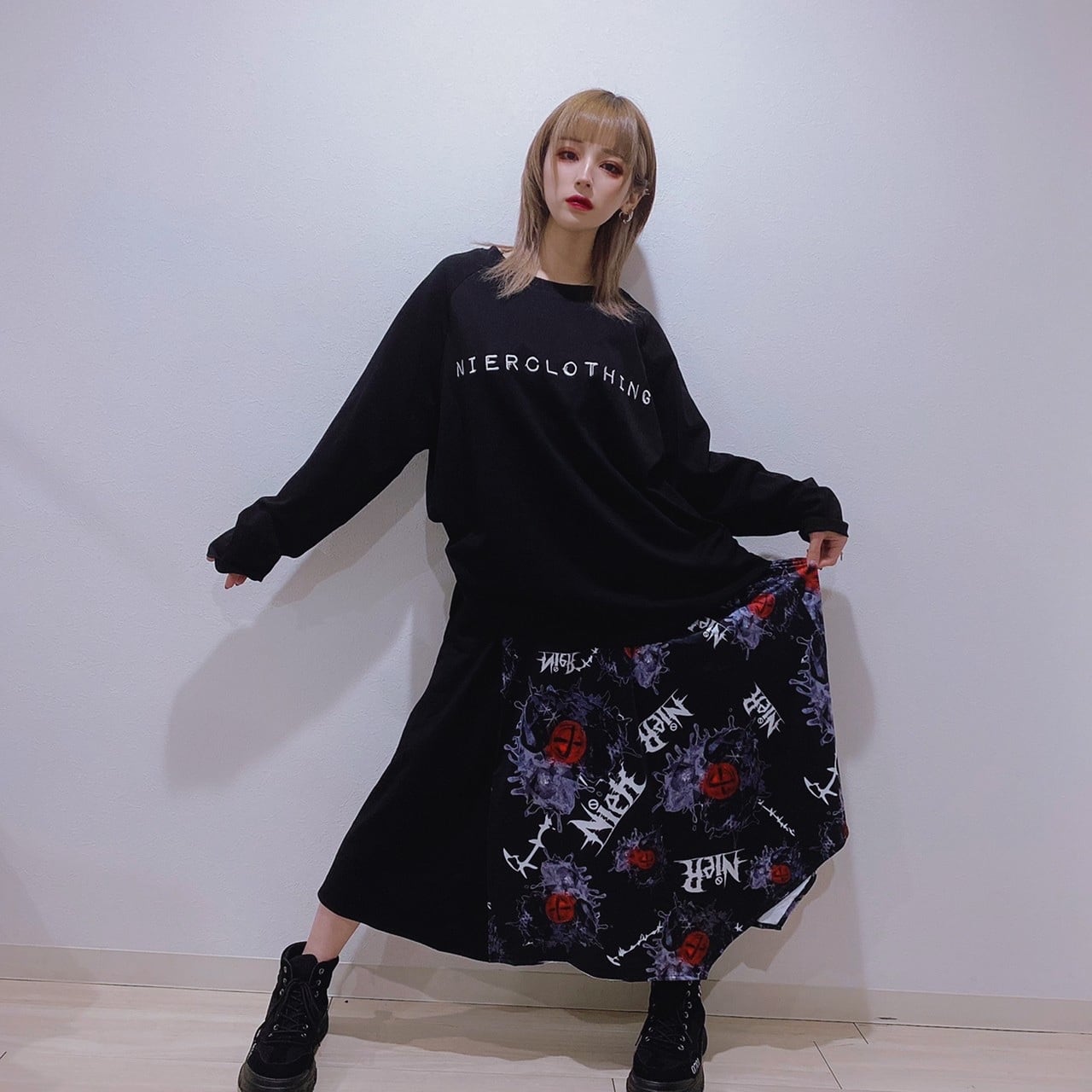 BLACK×オリジナルのHeartbeatデザインの切り替えがクールな変形ロングスカートです。