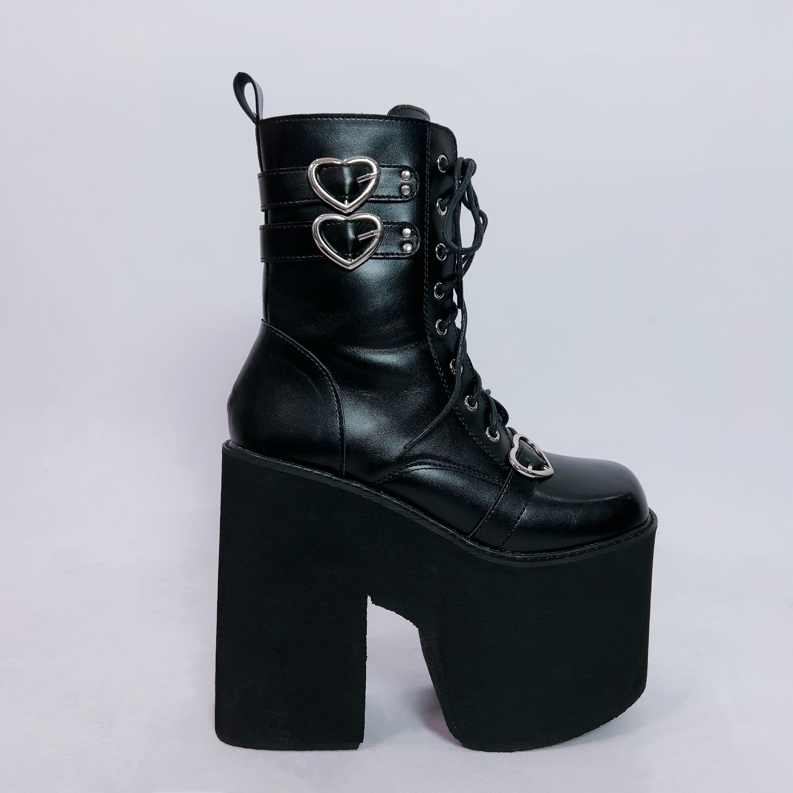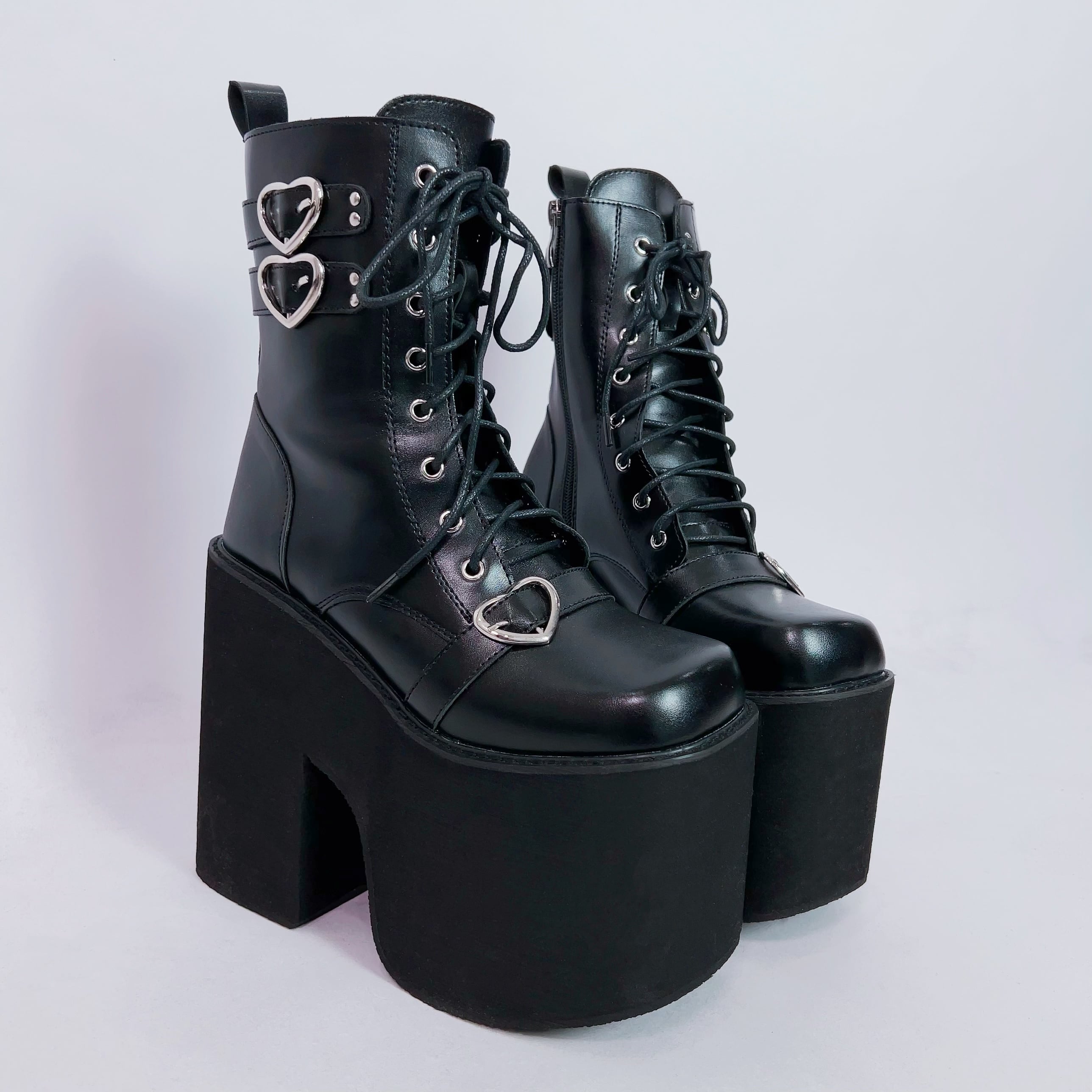 ※身長激盛り※HEART BUCKLE LACE-UP厚底ブーツ【身長約15cmUP】