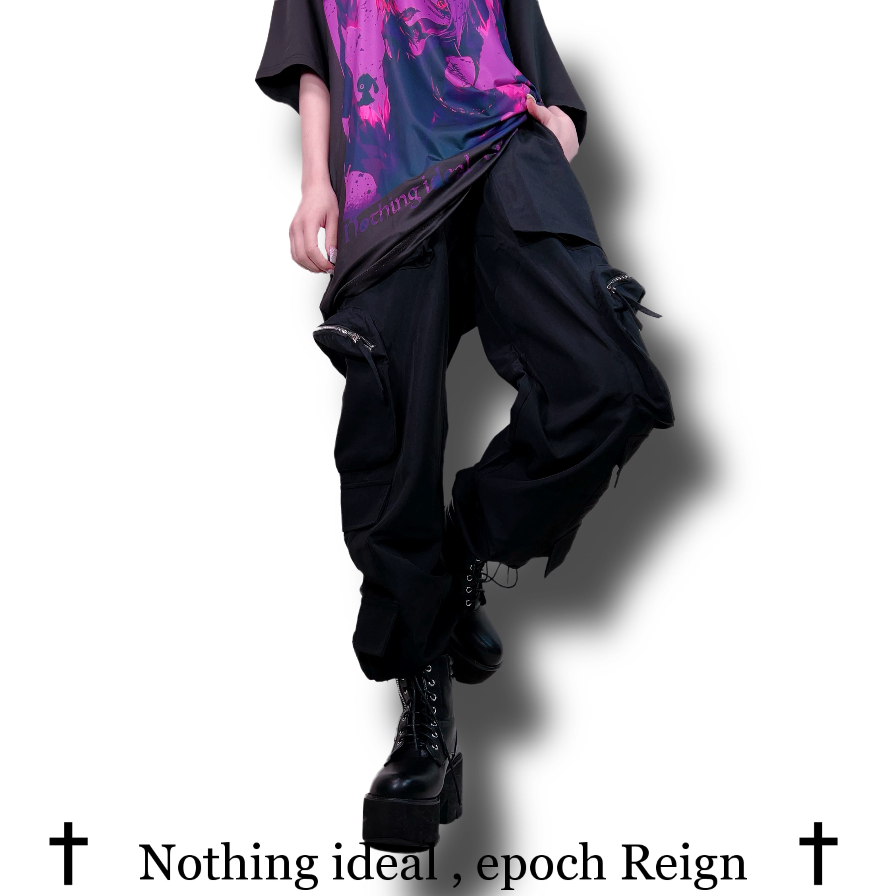 ウエストサイドと裾にかけて計8つのポケットが付いており、利便性も個性的さも◎