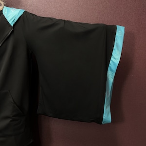 くすみブルーの和柄デザインの、着物のような袖が特徴的なアウターが新登場☆