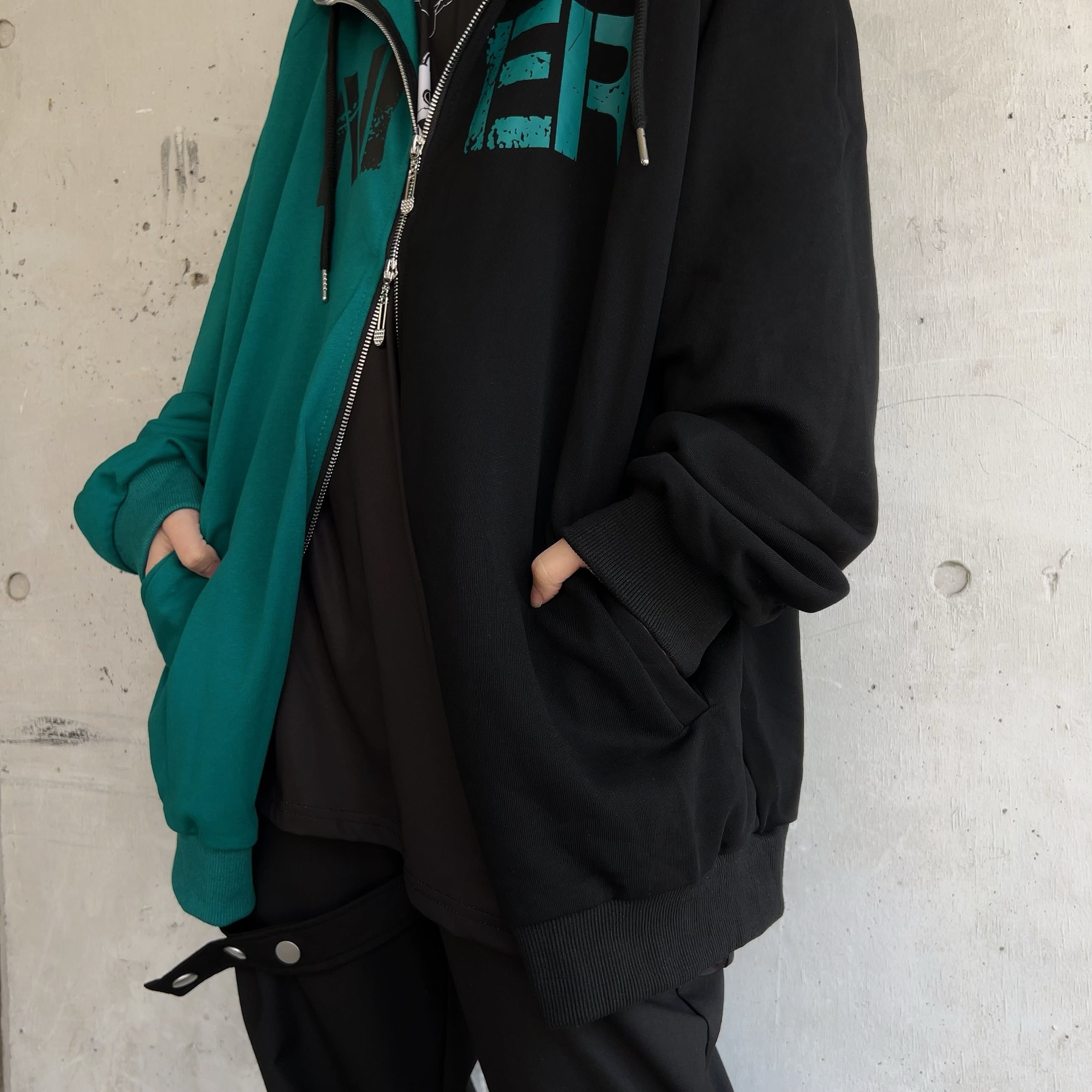 縦半分で異なる配色がクールに決まる☆BLACK×GREENカラーのZIP PARKAが新登場☆