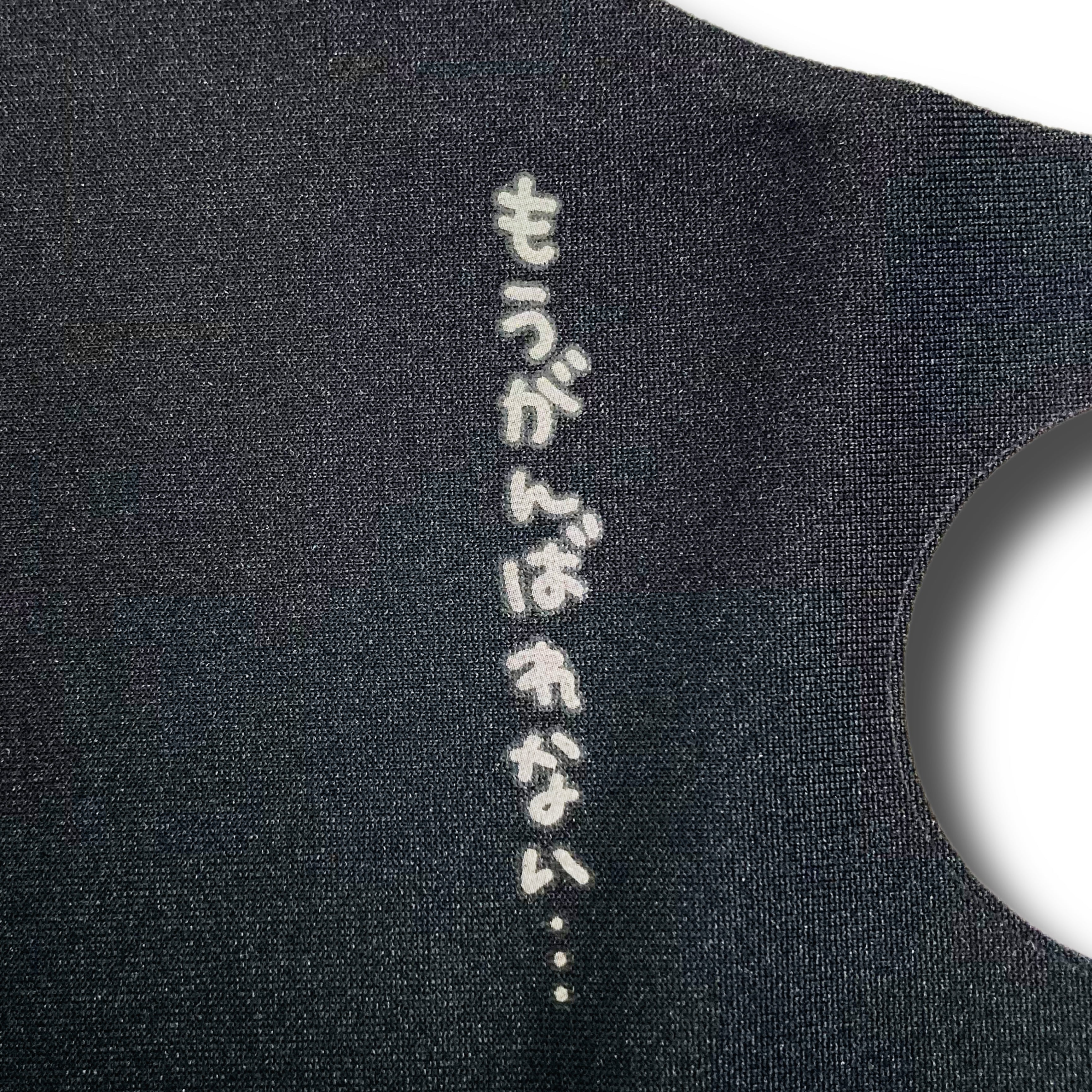 《もうがんばれない...》の文字がプリントされた、遊び心のある当店オリジナルデザインのマスクです。