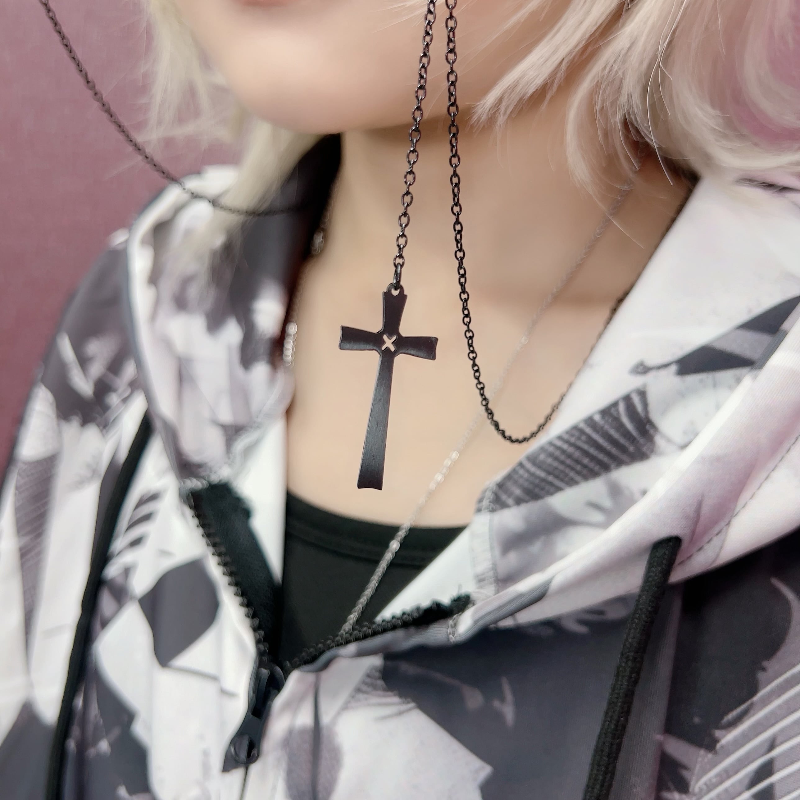 ジュエリーポーチ付きBLACKメガネチェーン【CROSS】