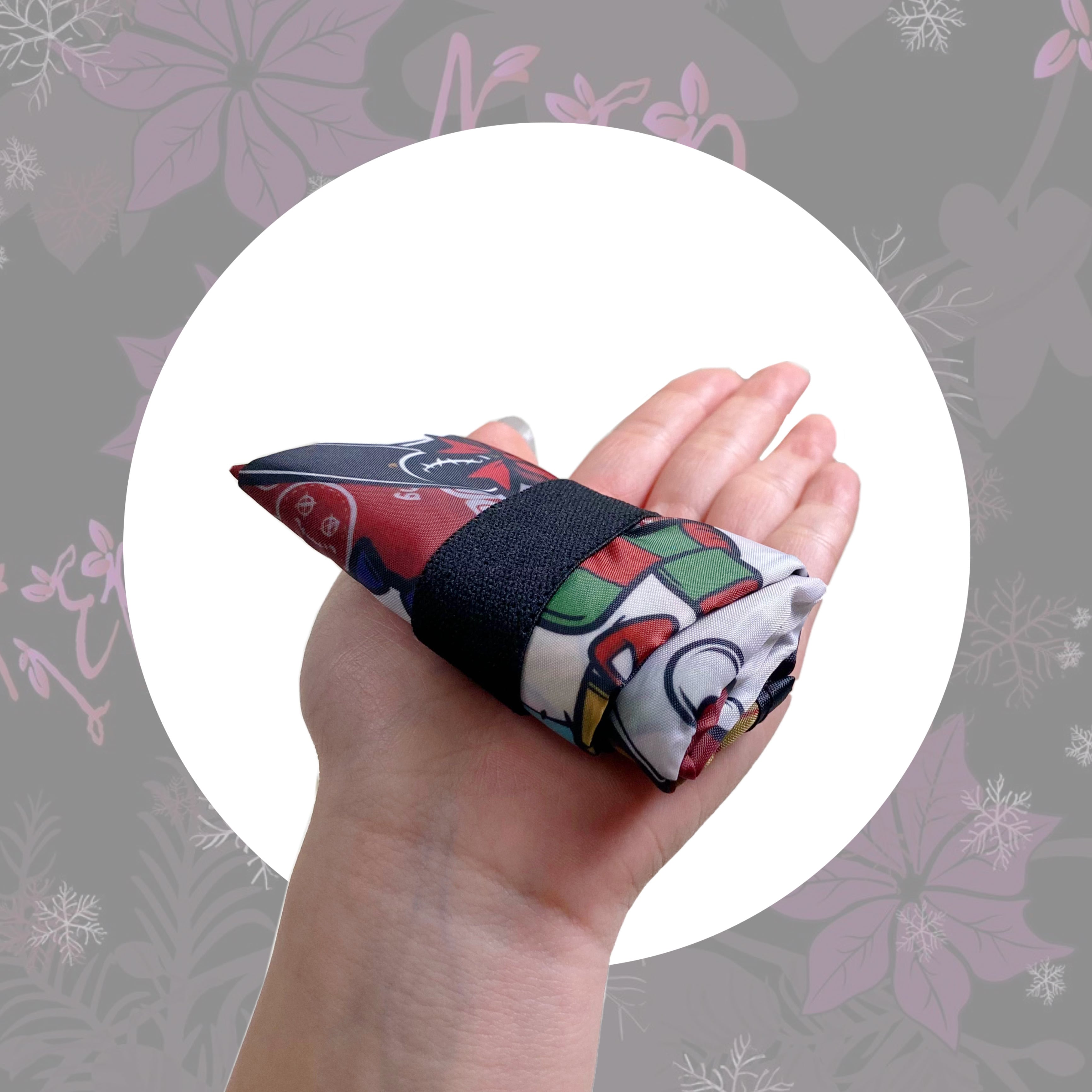 使わない時はゴムでくるっと留めて小さくまとまるので、ポケットや鞄の中に収納出来ます。