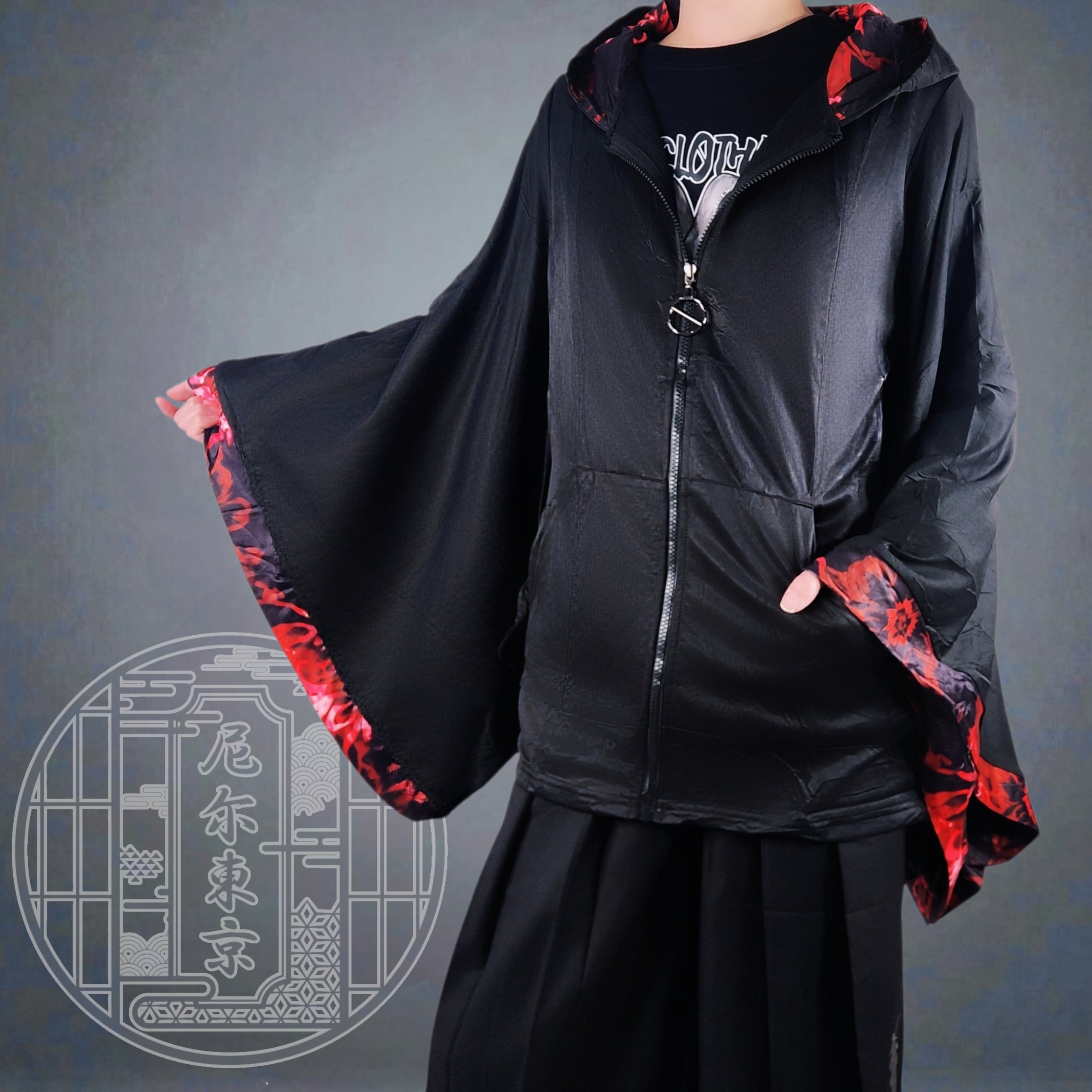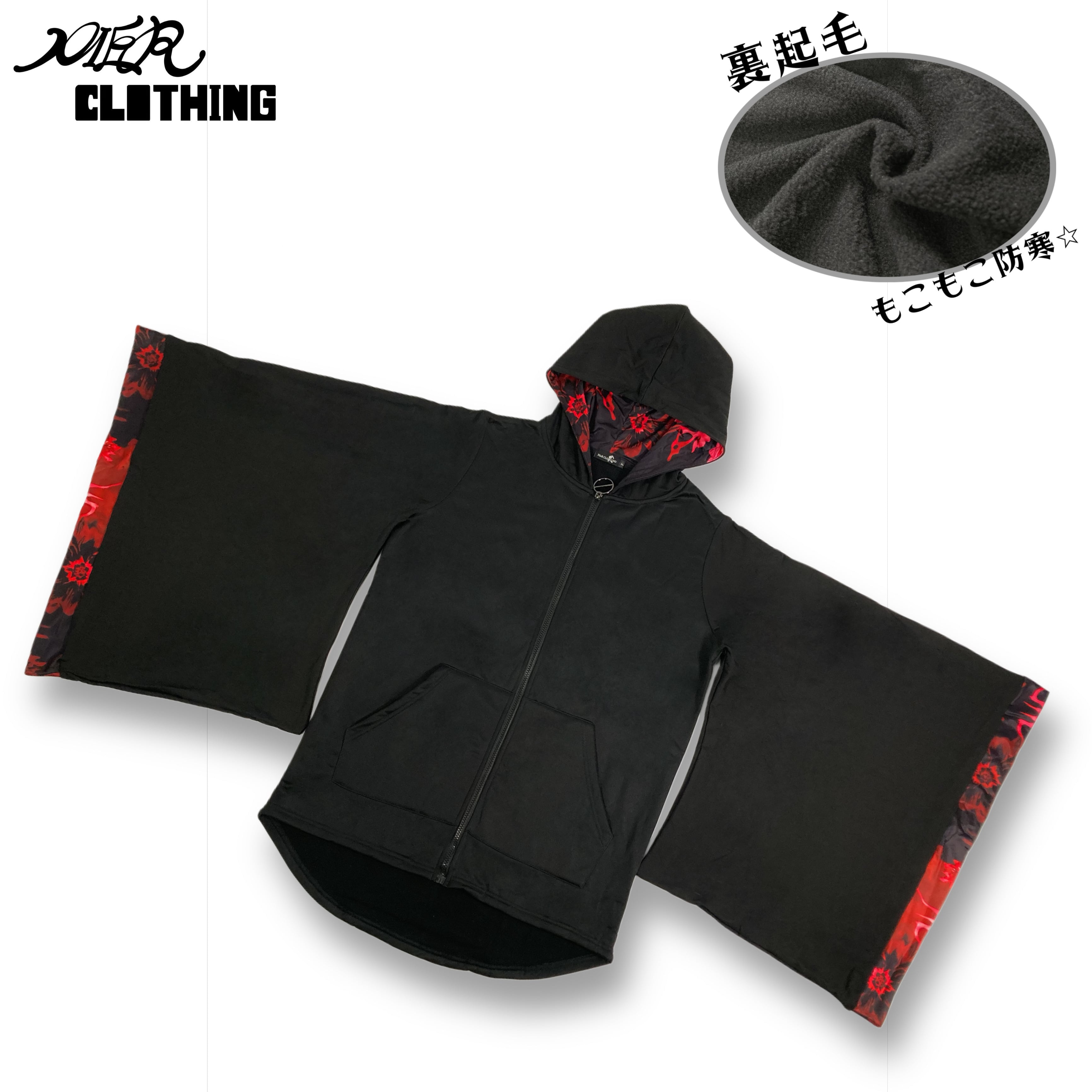 《先着39点限定サンキュー大特価》内側フリース着物袖ZIP OUTER【RED BLOSSOM】