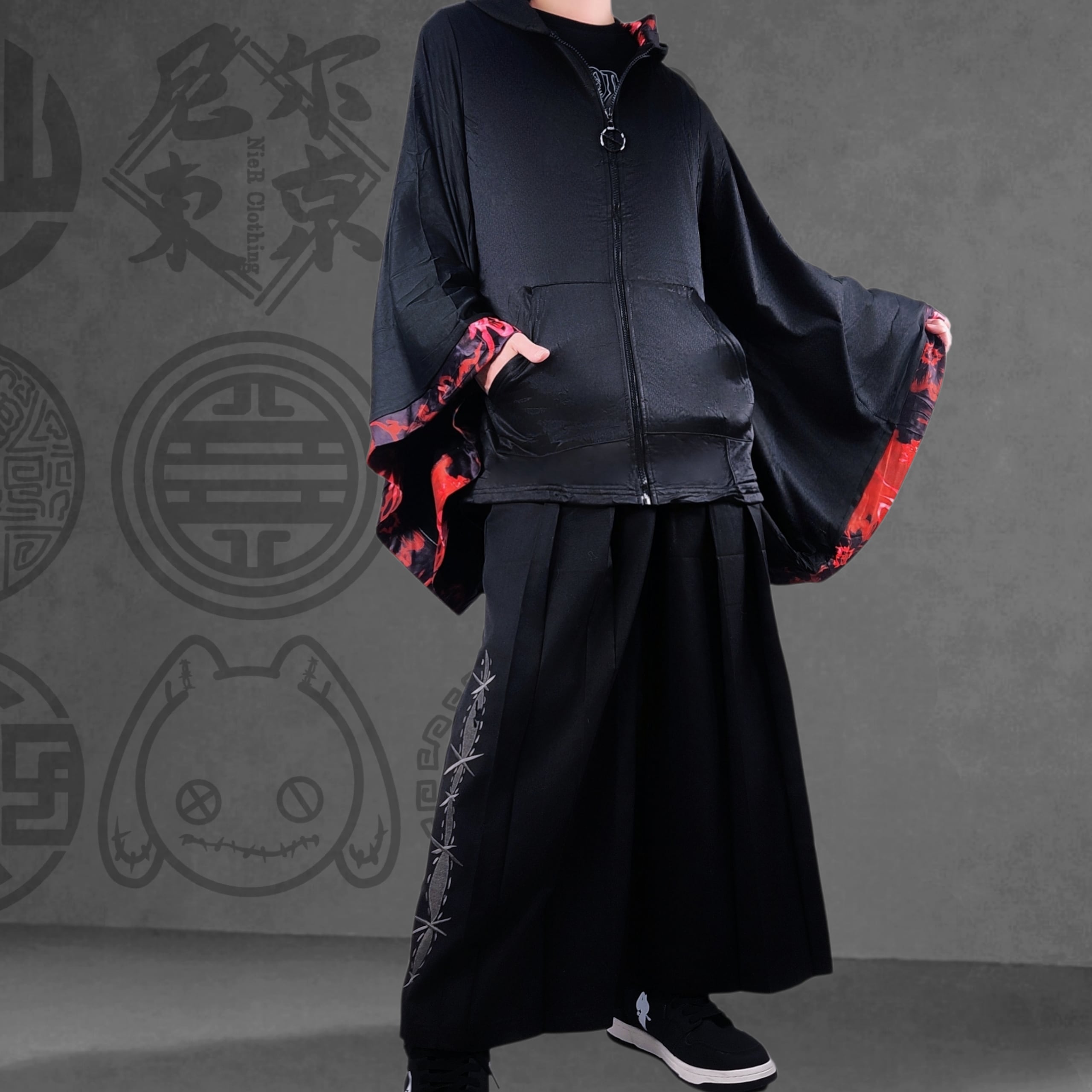 ・ポケット付き袴風ユニセックススカート【彼岸花】