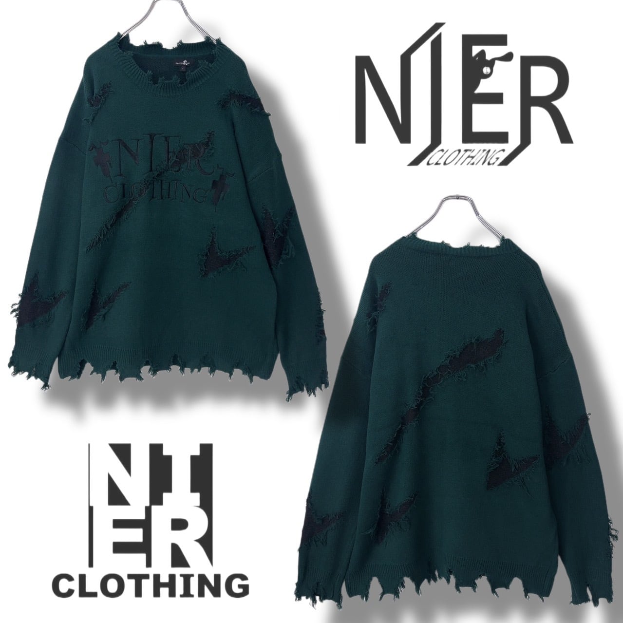 切り刻まれたようなたっぷりのダメージ加工がクールに決まる、DARK GREENカラーのセーターが新登場☆