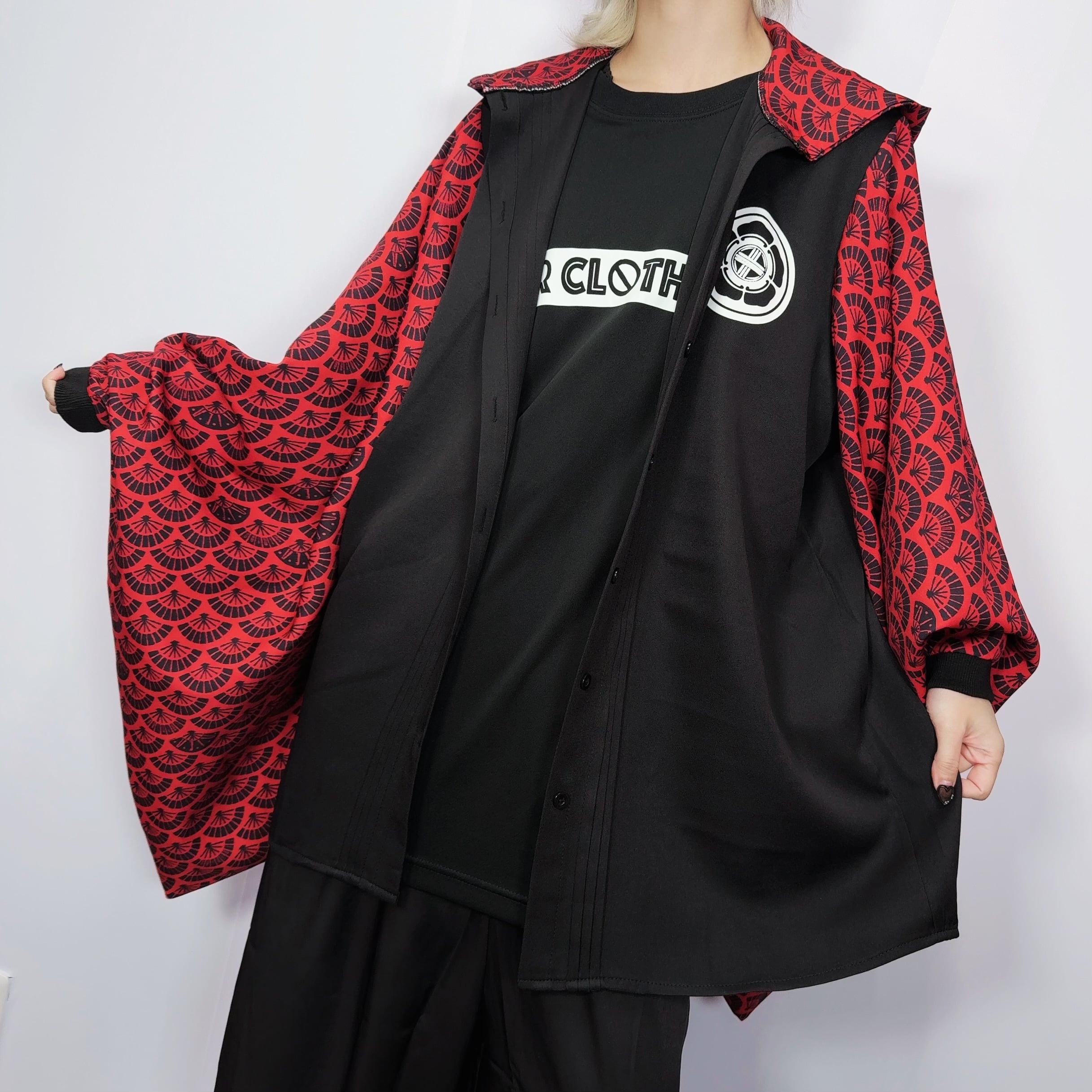 和柄《扇子》デザインの、ビジュアル映え抜群な着物風シルエットのシャツが新登場☆