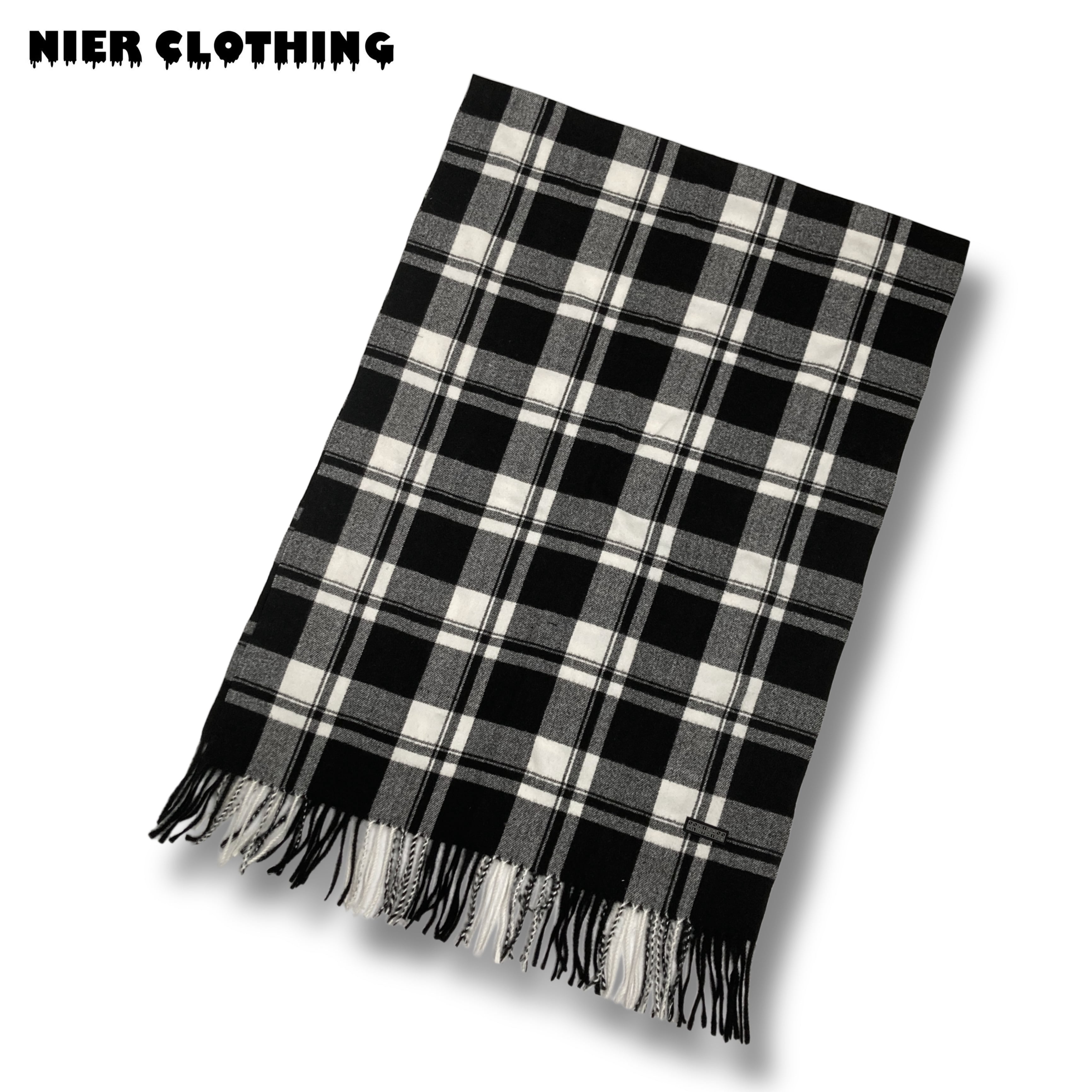 フリンジ付き大判BLACK CHECKEDストール【RUBBER LOGO】